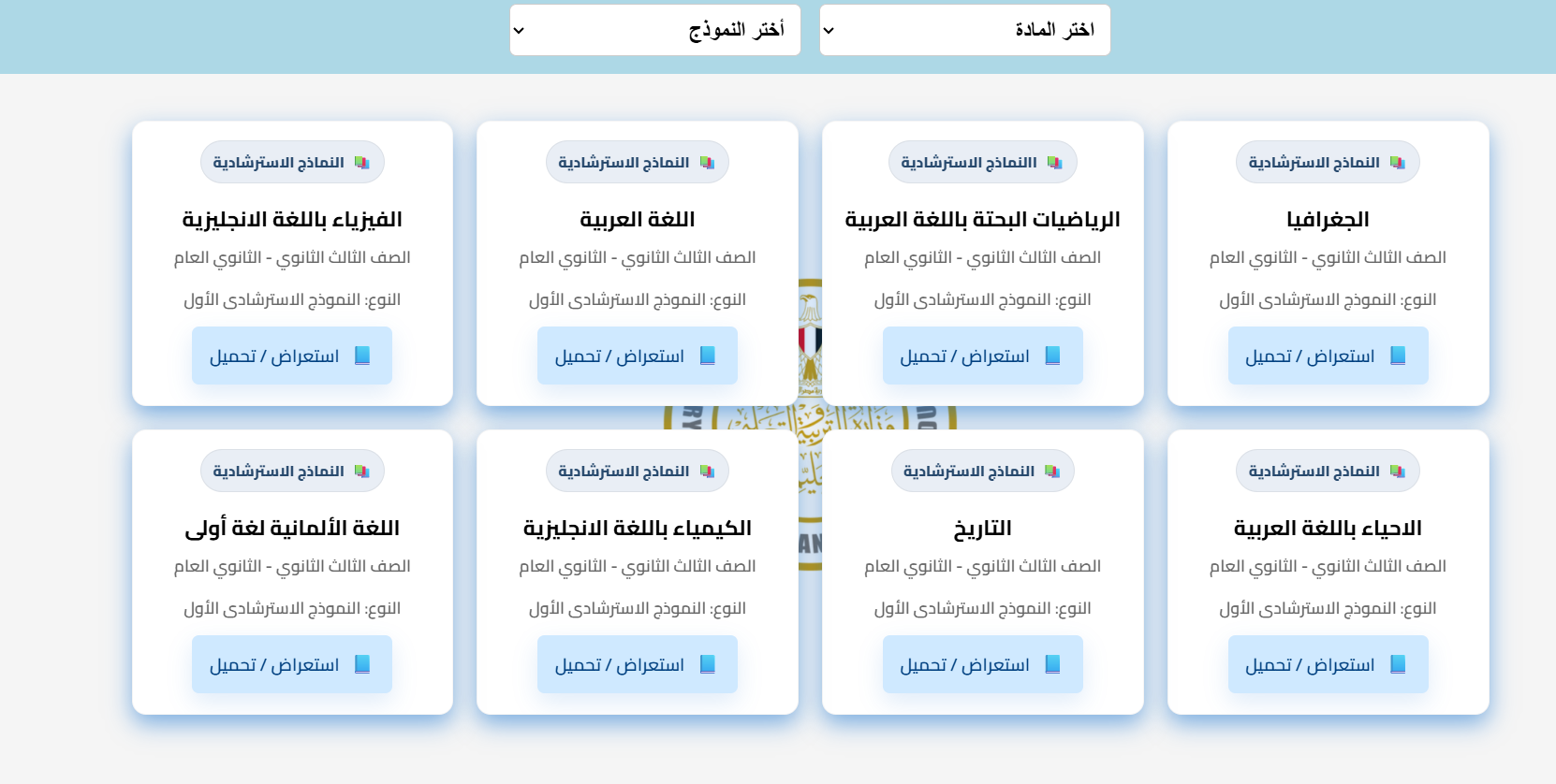 ظهرت الآن على موقع وزارة التربية والتعليم ، النماذج الاسترشادية 2026 لـ امتحانات الثانوية العامة 2026 في 8 مواد وهي (الجغرافيا - الرياضيات البحتة - اللغة العربية - الفيزياء باللغة الانجليزية - الأحياء باللغة العربية - التاريخ - الكيمياء باللغة الانجليزية - اللغة الألمانية “لغة اولى” )