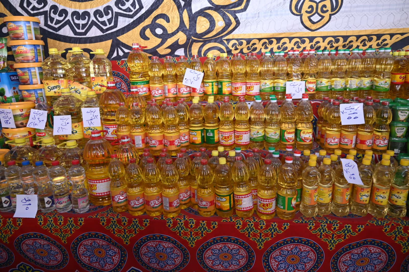 وخلال الجولة، تفقد المحافظ أقسام المعرض التي تضم السلع الغذائية الأساسية وياميش رمضان والتمور والسكر والأرز والزيوت والمكرونة والبقوليات ومنتجات الألبان والخضروات والفواكه، إلى جانب البيض والمنظفات وملابس العيد والألعاب للأطفال، موجّهًا بضخ المزيد من السلع يوميًا لتلبية كثرة الإقبال وعدم تحميل المواطن أي أعباء إضافية.