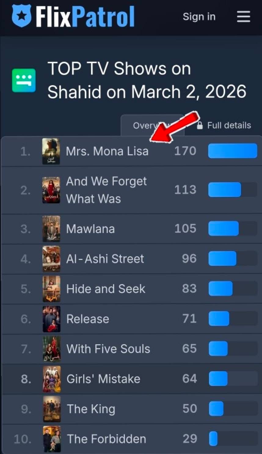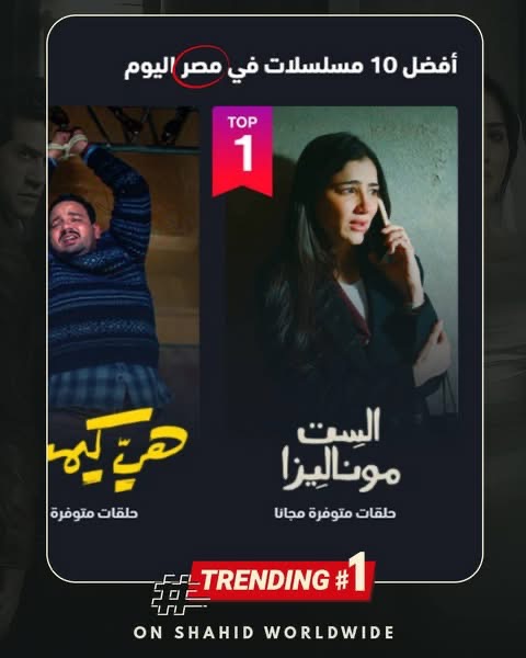 واضاف سامي ؛"و عايز المسلسل اللى هيتصدر لما يكتب إحنا رقم ١ ، يقول فى نفس البوست (بعد إنتهاء عرض الست موناليزا ) ده فى حالة إنه يكون مسلسل ٣٠ حلقة من اللى بيتعرض و لكن لو مسلسل ١٥ لسه هينزل يكتب براحته و مش لازم يقول بعد ما الست موناليزا خلص عرض ، رمضان كريم عليكم و مبروك نجمة رمضان الأولى مى عمر". الدول العربية، منذ بدء عرضه على منصة «شاهد».