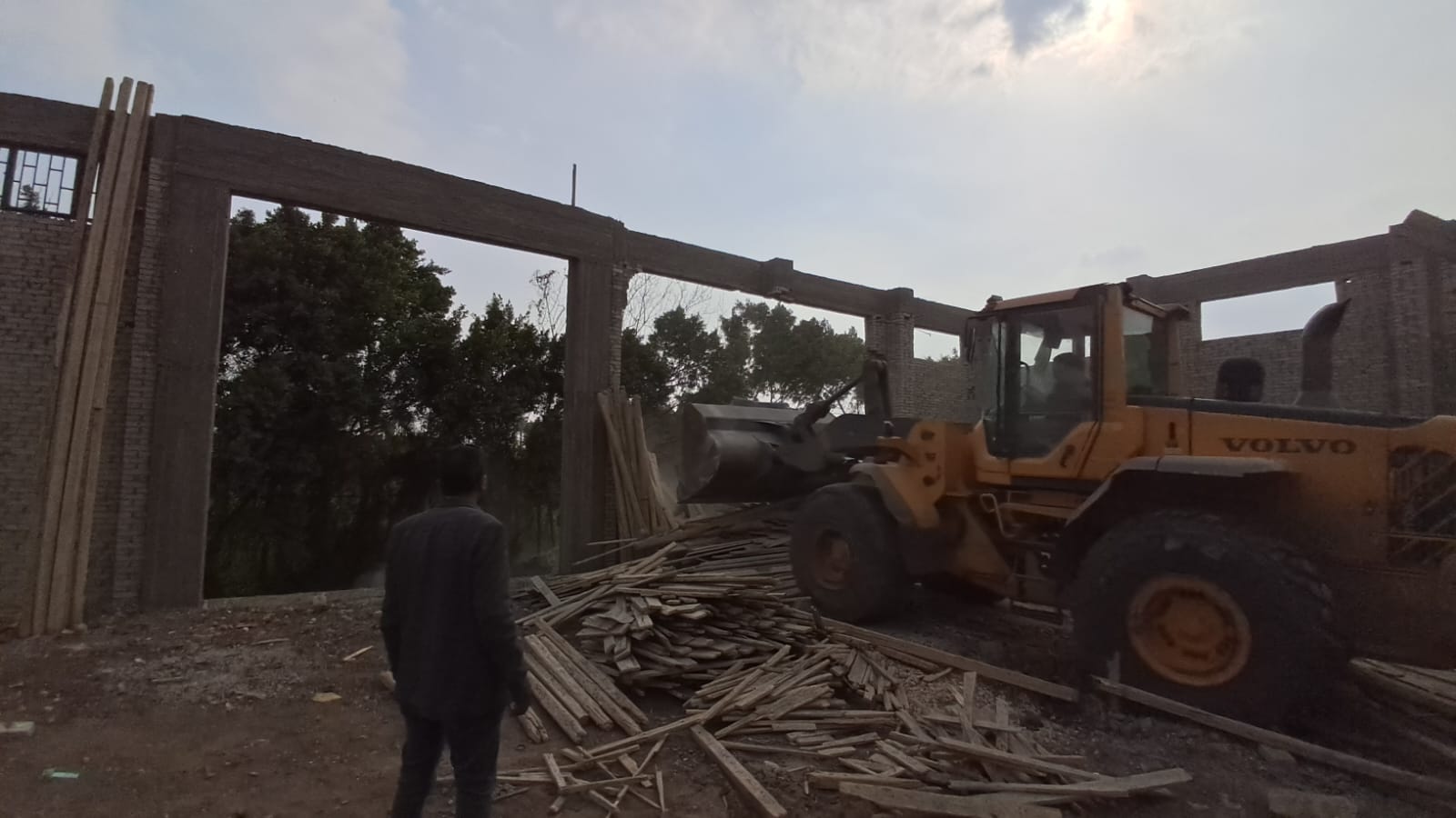 كما تم إزالة دور أرضي مقام بشدة خشبية قبل صب خرسانة السقف على مساحة نحو ١٥٠ مترًا تقريبًا بالمنطقة ذاتها وذلك لعدم الحصول على التراخيص اللازمة.