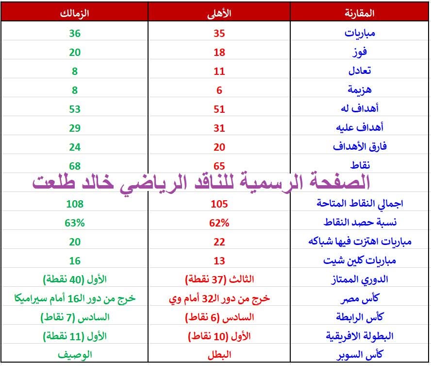 كشف الناقد الرياضي خالد طلعت عن تفوق الزمالك علي الأهلي مقارنه بالارقام في الموسم الحالي.