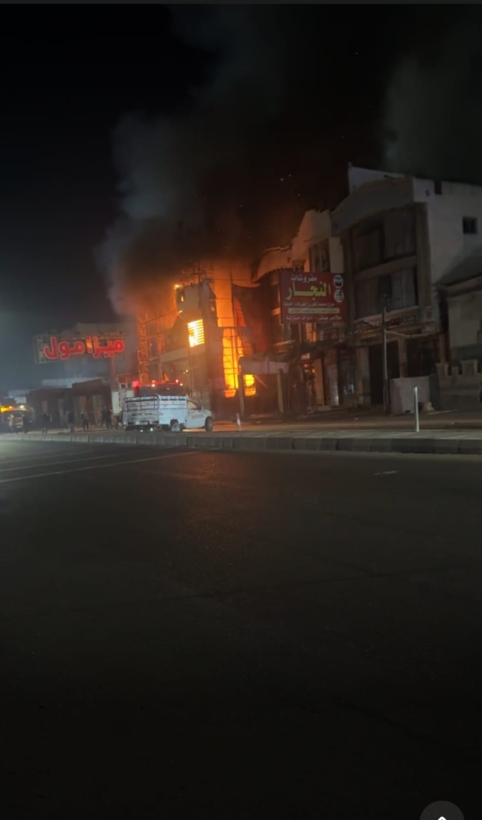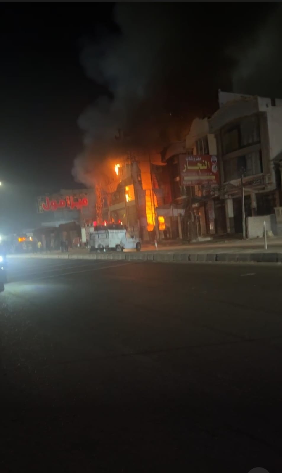 وأفاد شهود عيان أن سبب اندلاع حريق هائل جاء نتيجة ماس كهربائي والتسبب في احتراق محتويات مخازن المول التجاري إثر ماس كهربائي مفاجىء.