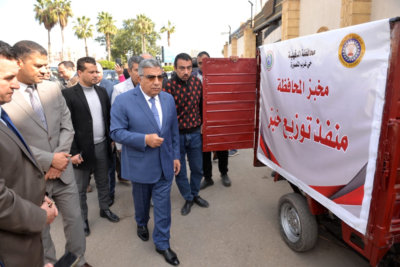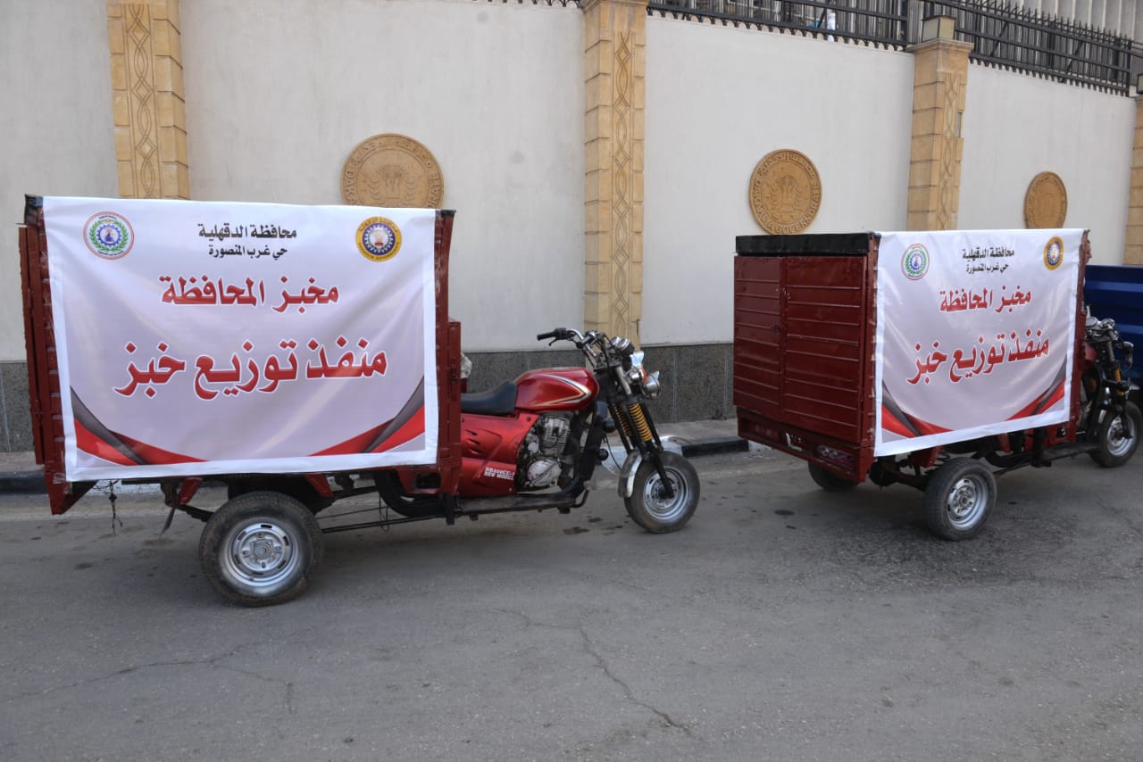 تفقد اللواء طارق مرزوق محافظ الدقهلية، منظومة التروسيكلات الجديدة المخصصة لنقل وتوزيع الخبز من المخابز إلى منافذ البيع، وذلك في إطار تطوير منظومة توزيع الخبز وضمان وصوله للمواطنين بصورة منتظمة وبالمواصفات المقررة، خاصة بالمناطق التي لا تتوافر بها مخابز.