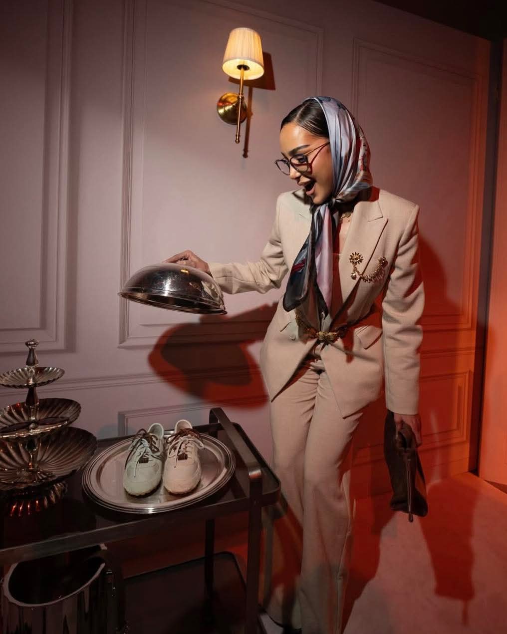 وجاء اختيارها للون الداكن ليعكس ذوقًا كلاسيكيًا راقيًا، فيما أضافت لمسات ناعمة من الإكسسوارات التي أكملت اللوك دون مبالغة.