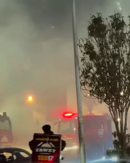 وظهر في الفيديو المتداول تصاعد اللهب والدخان من اعلى سور النادي، وسط حالة من القلق بين المتواجدين في محيط الموقع.