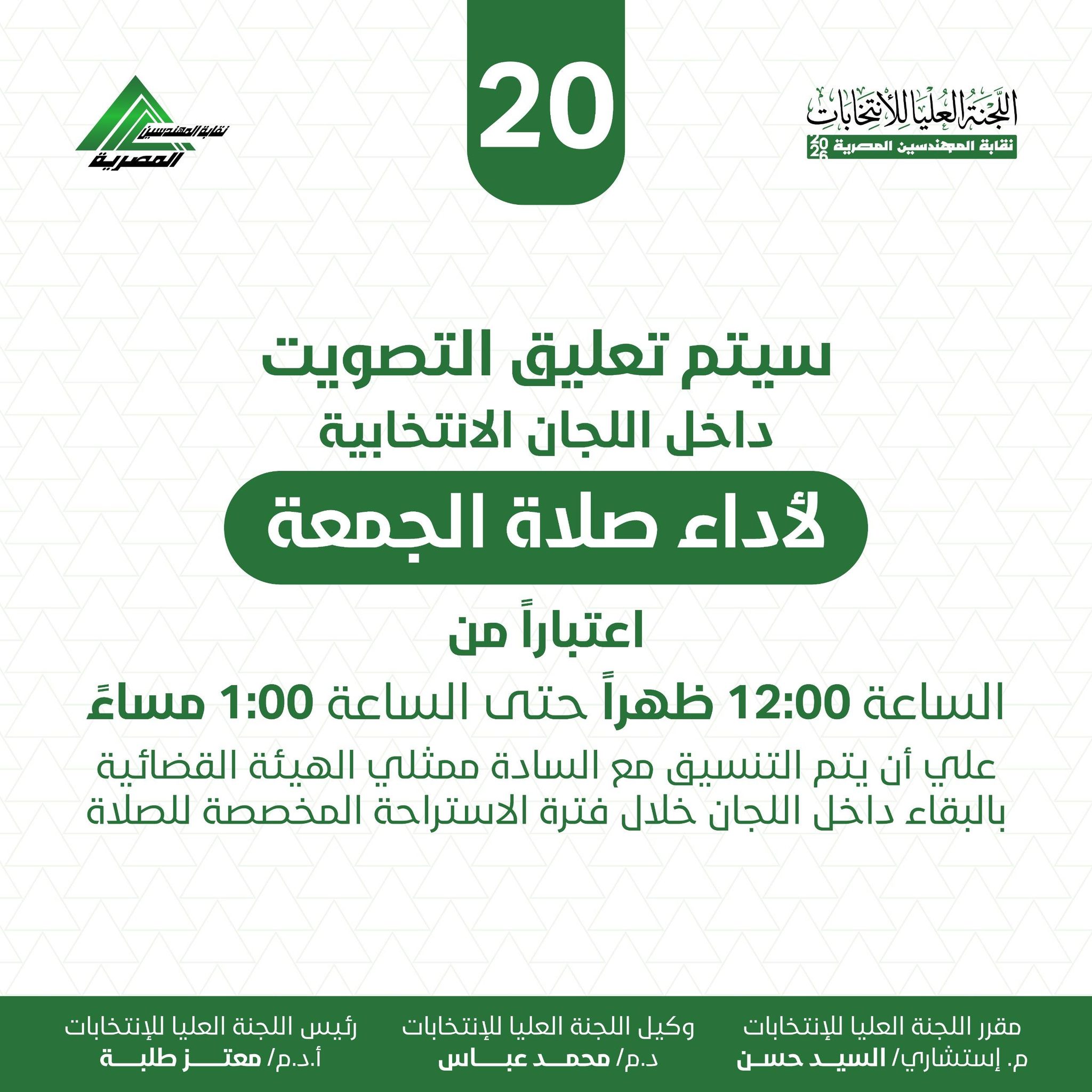 وحددت اللجنة العليا الرابط الإلكتروني التالي لمعرفة المقر الانتخابي للمهندسين: