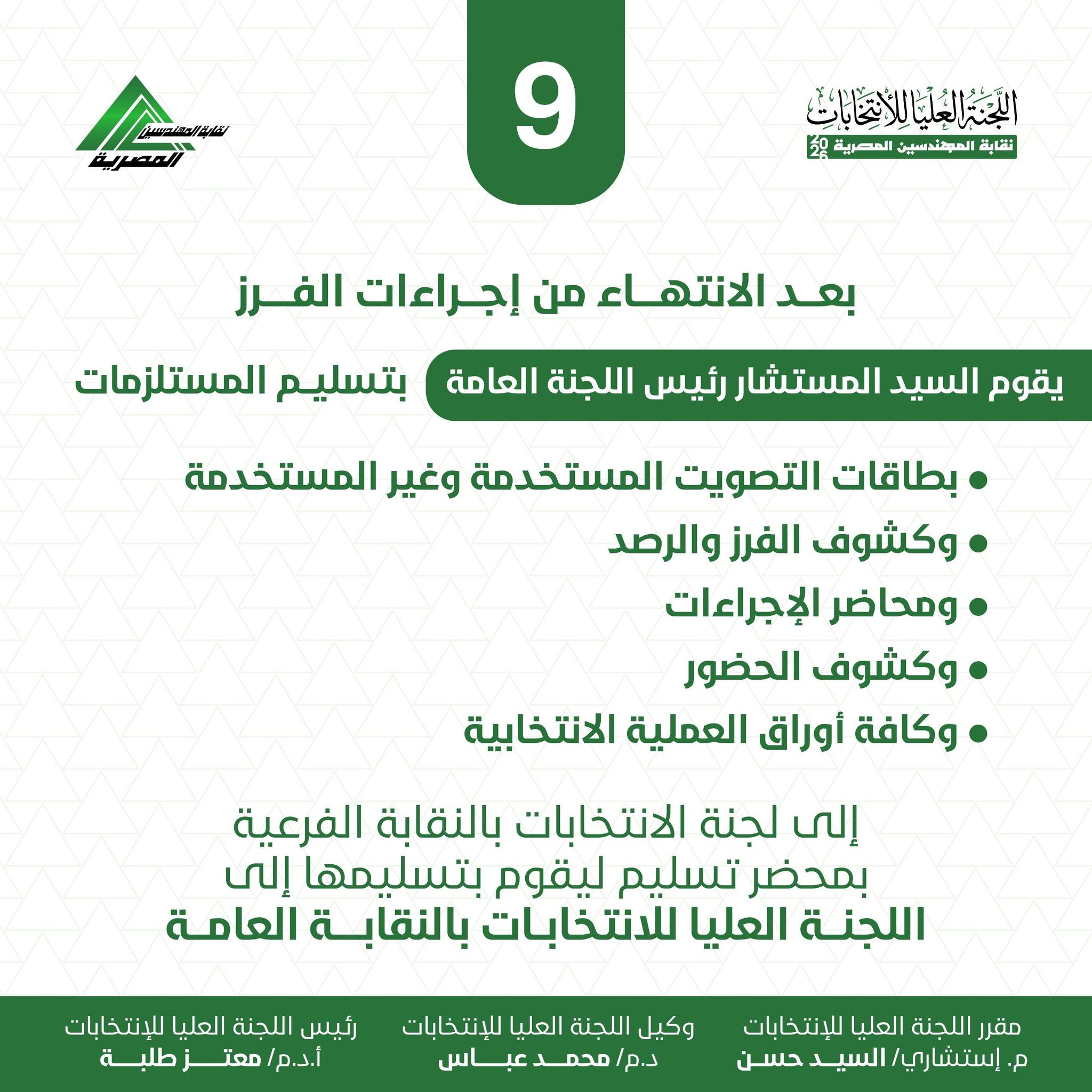 وتأتي هذه العملية الانتخابية وفقاً لأحكام المادة (13) من قانون النقابة رقم (66) لسنة 1974 وتعديلاته، وسط أجواء تنافسية كبيرة بين 19 مرشحاً على مقعد النقيب العام، يتقدمهم النقيب السابق المهندس هاني ضاحي ومحمد عبد الغني وشريف صبري وإبراهيم الحلواني وغيرهم من الكوادر الهندسية، في سباق يتطلب الحصول على الأغلبية المطلقة للأصوات لتجنب الذهاب لجولة إعادة نهائية في 13 مارس المقبل.