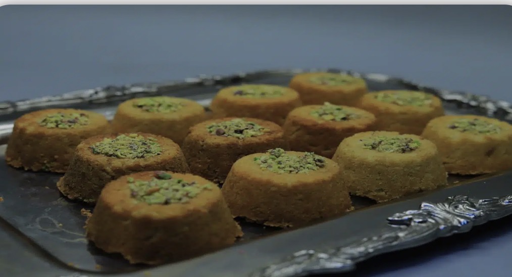 يضاف للوجه فستق مجروش وورد مجفف.