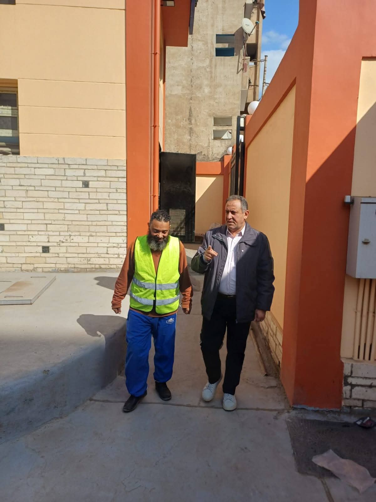 كما شملت الجولة محطة رفع صرف صحي العجيزي، حيث تفقد مكونات المحطة واطمأن على جاهزية المعدات، مؤكدًا على التزام العاملين بتعليمات السلامة والصحة المهنية أثناء تنفيذ أعمال الصيانة أو التطهير، مشددًا أن "سلامة العامل تأتي أولًا".