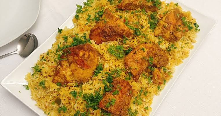 طريقة تقديم الدجاج بالكاري والأرز بالخلطة