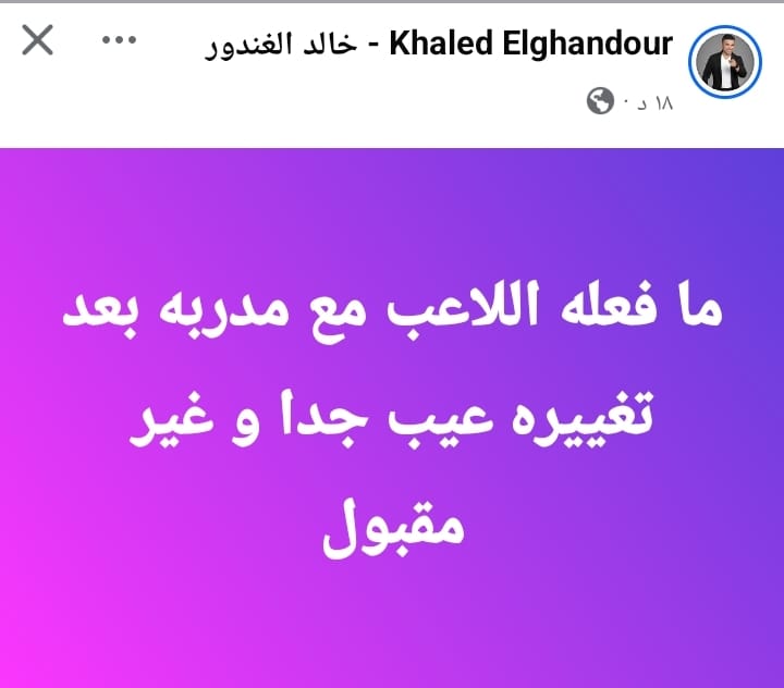 وكتب الغندور عبر حسابه علي فيسبوك "ما فعله اللاعب مع مدربه بعد تغييره عيب جدا و غير مقبول".