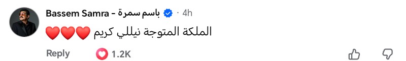 وكتبت الفنانة نيلي كريم، في منشور عبر صفحتها الرسمية عبر موقع التواصل الاجتماعي “فيس بوك”: “عين سحرية .. كل احترامي وتقديري لكل صناع العمل”؛ ليرد عليها الفنان باسم سمرة عبر التعليقات: "الملكة المتوجة نيللي كريم" .