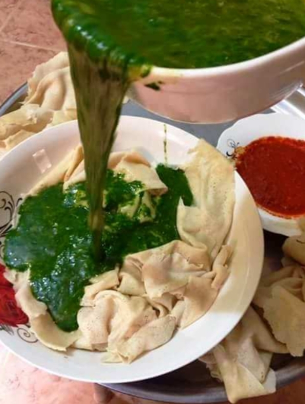 وبعد ذلك يضاف إليها قليل من البامية الناشفة، ويتم إحضار الثوم ويقدح فى السمن ويضاف إليه الخبيزة، وبعد النضج يتم قلى بيضتين فى السمن ثم يضاف عليها الخبيزة وتؤكل بخبز الدوكة الذى يسمى فى اللغة النوبية "كالفتى" بما يشبه "الفتة".
