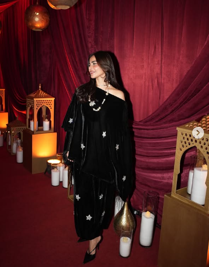 ظهرت رانيا منصور في الصور بإطلالة كشفت عن ذوقها الأنيق، حيث ارتدت جيبة مصنوعة من القماش المخملي الأسود المطرز و نسقت معها بلوزة بنفس القماش واتسمت بصيحة الأوف شولدر.