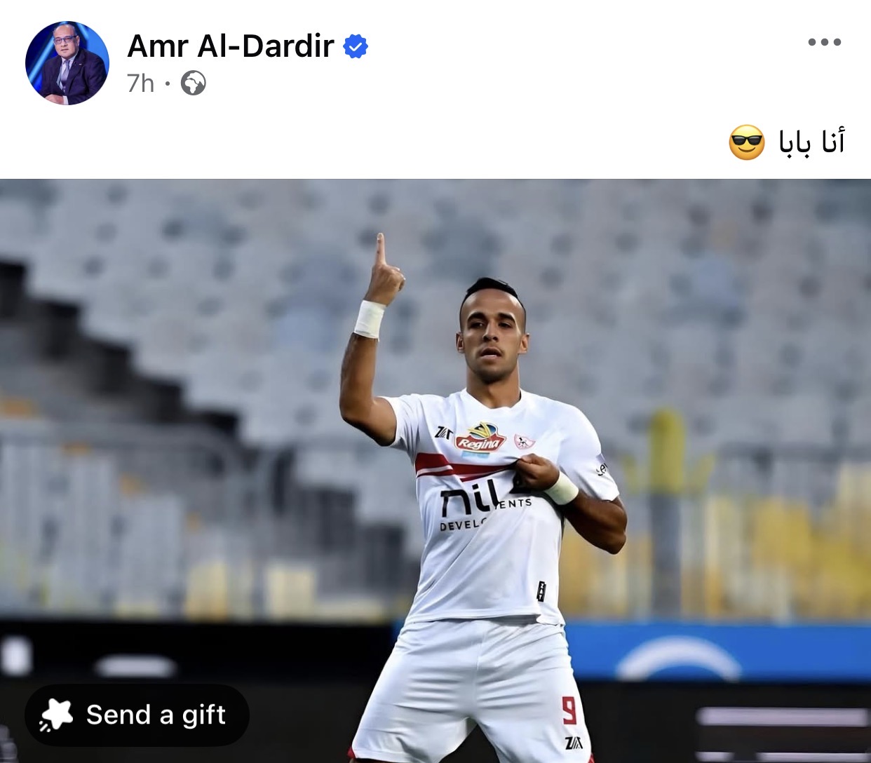 وكتب الناقد الرياضي عمرو الدردير عبر حسابه علي موقع التواصل الاجتماعي فيسبوك “أنا بابا لو هفك الشوق تعالي فوق”.