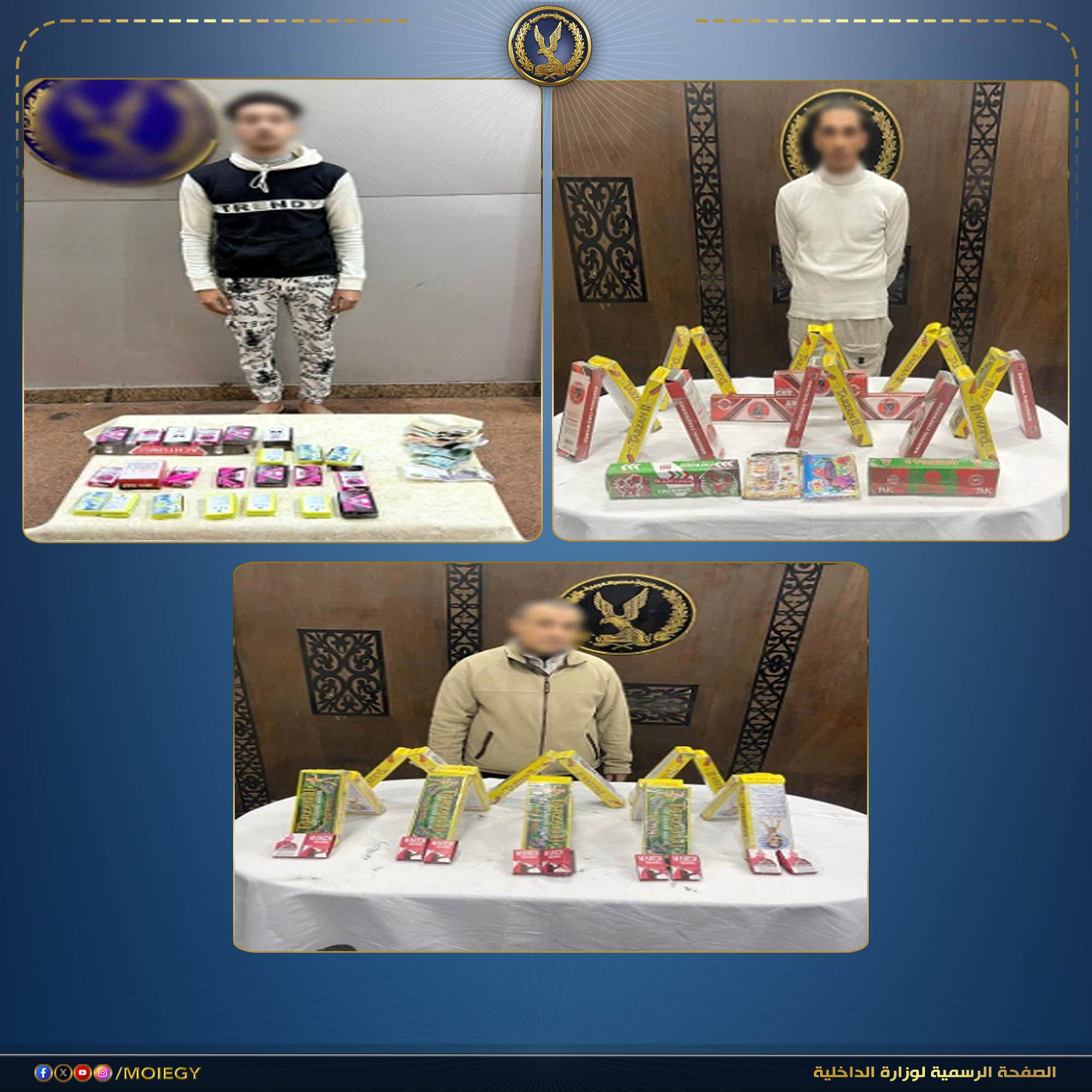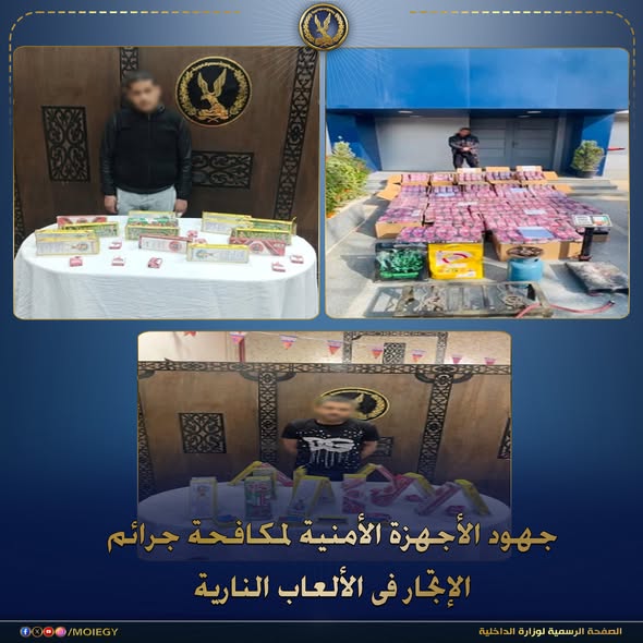 جاء ذلك استمراراً لجهود أجهزة وزارة الداخلية لمكافحة جرائم الإتجار فى الألعاب النارية وحيازتها وترويجها ، وتكثيف الجهود لملاحقة وضبط القائمين على حيازتها.