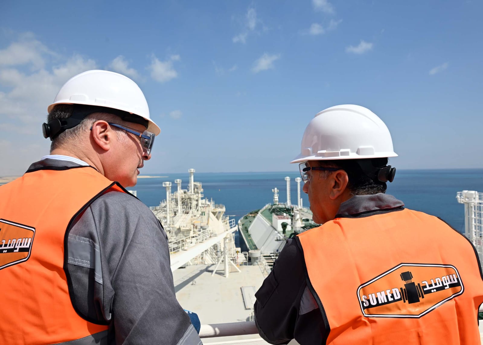 وفي أثناء تواجده بالميناء، استمع رئيس مجلس الوزراء ومرافقوه لشرح من المهندس محمد عبد الحافظ، رئيس الشركة العربية لأنابيب البترول (سوميد) حول التطور الكبير في الدور الاستراتيجي وإمكانات البنية التحتية للشركة، التي أُنشئت في عام 1974 كحلقة رئيسية لنقل خام بترول الخليج العربي عبر مصر؛ حيث تستقبل سوميد الخام من الناقلات البحرية أو يتم تفريغ جزء من حمولتها في مستودعات الشركة بالعين السخنة، قبل نقله عبر خطي سوميد بطول 320 كم إلى منطقة سيدي كرير بالإسكندرية؛ لإعادة شحنه وتصديره إلى أوروبا.