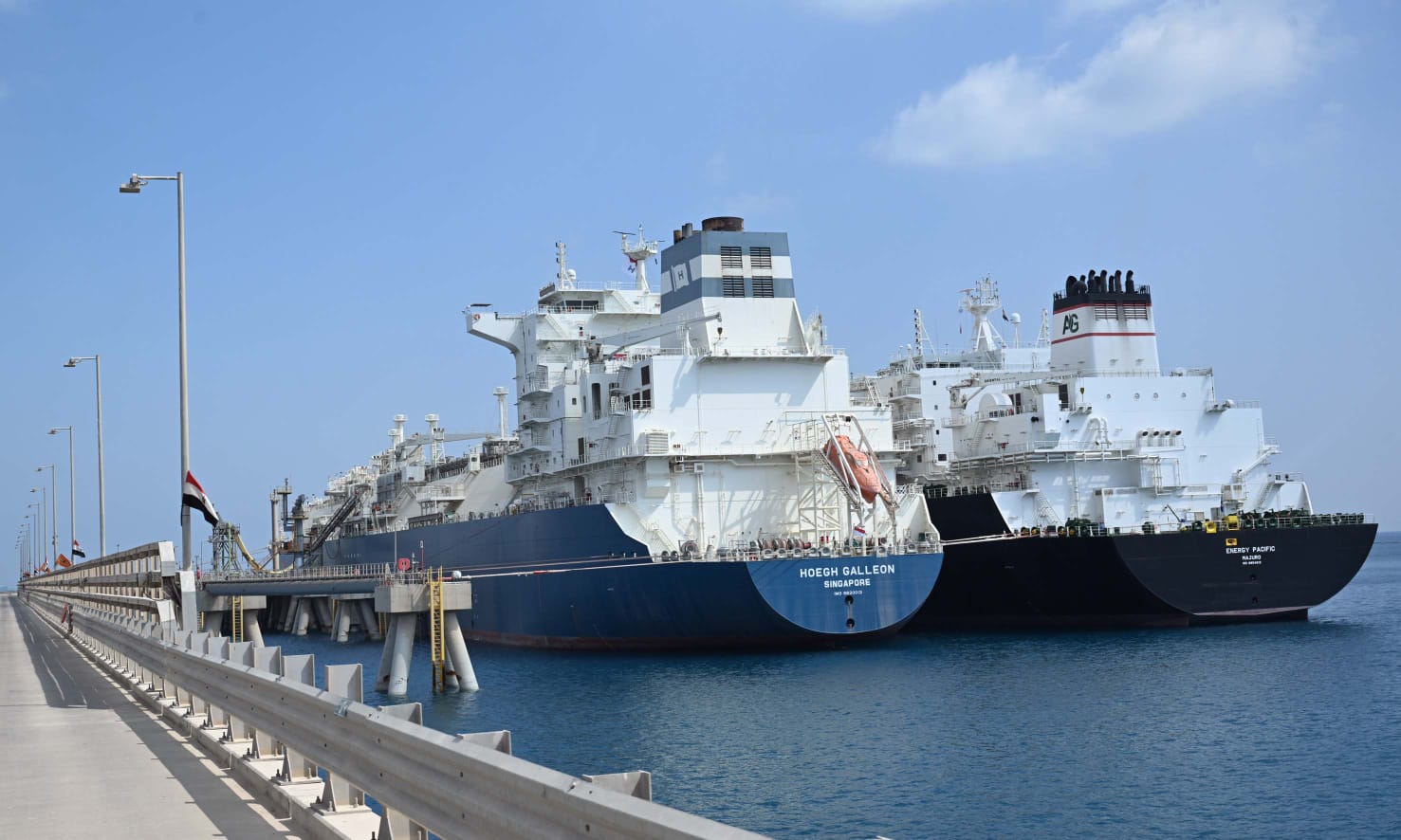 وأضاف أن الميناء يستقبل شحنات الغاز الطبيعي المسال المستوردة من الناقلات البحرية؛ حيث يتم ضخها إلى سفينتي التغويز "هوج جاليون" و"انرجوس اسكيمو"، المتواجدتين على الرصيف البحري؛ لإعادة تغويز الغاز وضخه عبر خطوط الشبكة القومية للغاز إلى المستهلكين بالسوق المحلية.