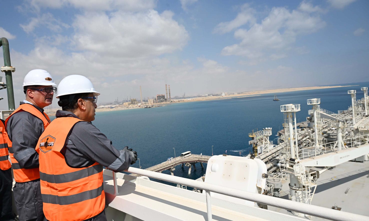 وخلال ذلك، صعد رئيس الوزراء إلى وحدة التغويز حتى وصل لنقطة المشاهدة المطلة على السفينة المحملة بشحنة الغاز المسال؛ لمتابعة إجراءات عملية التغويز.