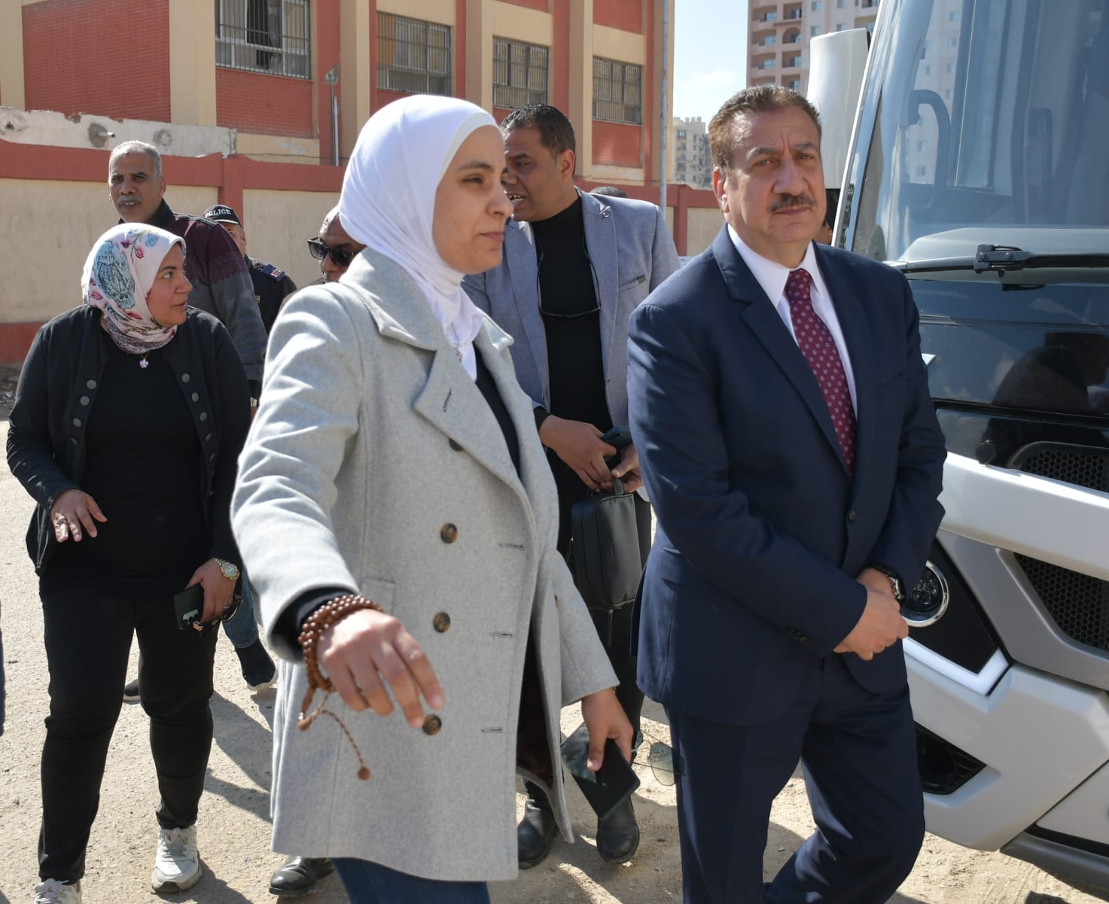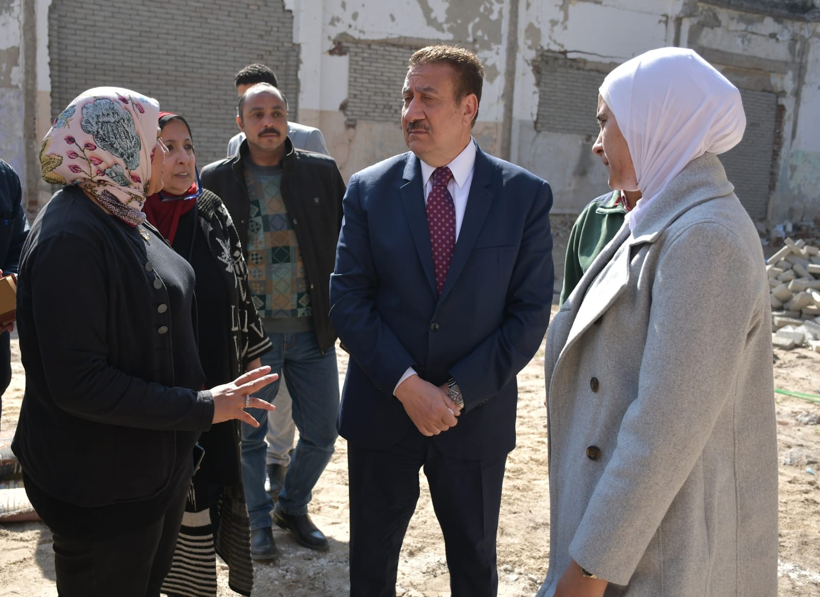 رافق المحافظ خلال الجولة اللواء عمرو فكري السكرتير العام للمحافظة و الأستاذة شيماء العزبي رئيس حي المناخ، والأستاذة شيماء حسني رئيس جمعية حياة للخدمات والتنمية، وعدد من الجهات المختصة