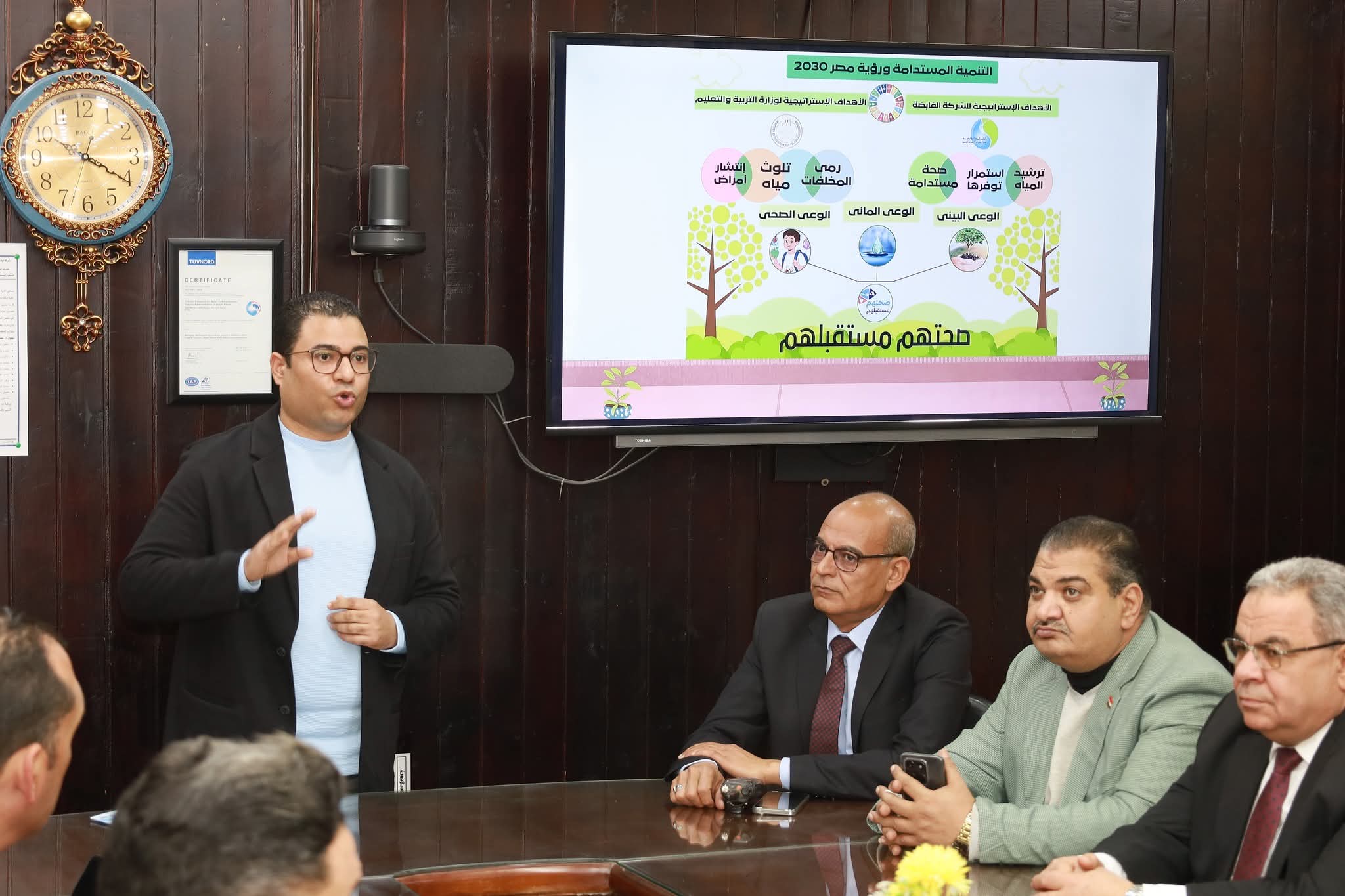 ناقشت اللجنة التنسيقية العليا لمشروع "صحتهم مستقبلهم"، برئاسة اللواء مهندس محمد عبد الفتاح، رئيس مجلس الإدارة والعضو المنتدب لشركة مياه الشرب والصرف الصحي بالغربية، والمهندس ناصر حسن إسماعيل، وكيل وزارة التربية والتعليم بالغربية، خطة وأليات الوصول لـ 382 ألف طالب بالابتدائى، في إطار التعاون المثمر والبناء لتحقيق أهداف التنمية المستدامة وبناء جيل واعٍ بقضايا وطنه.