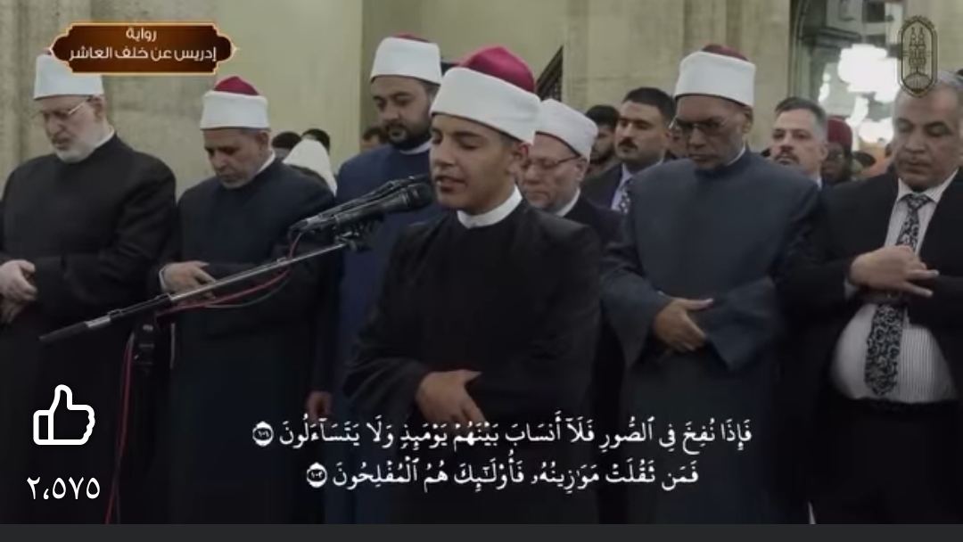 - الشيخ رضا السويفي، من الركعة التاسعة وحتى الثانية عشر، برواية أبو الحارث عن الكسائي.