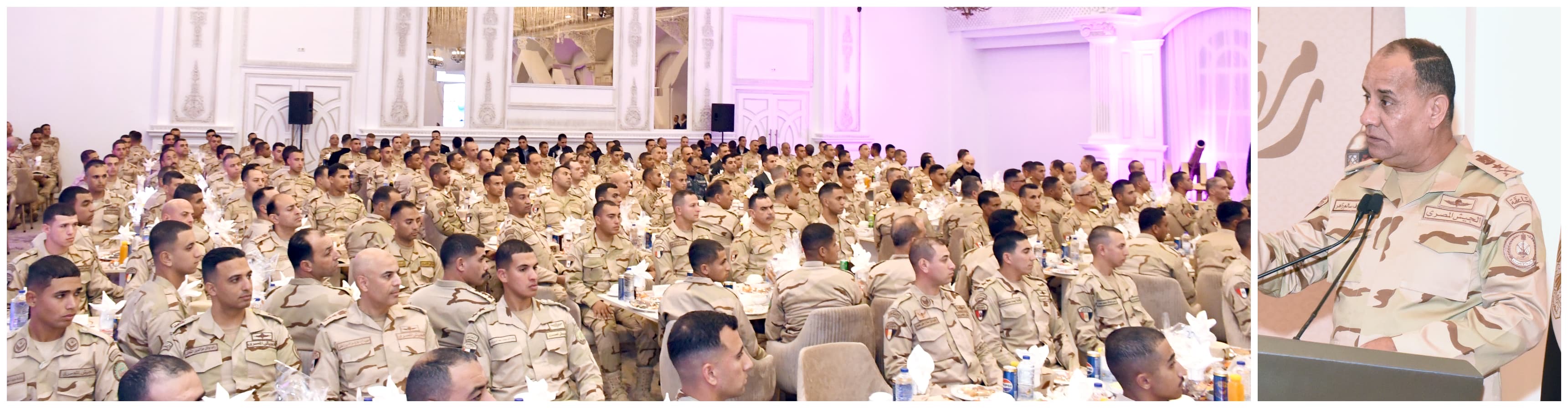 وفى ختام اللقاء شارك القائد العام للقوات المسلحة وزير الدفاع والإنتاج الحربى المقاتلين تناول وجبة الإفطار.