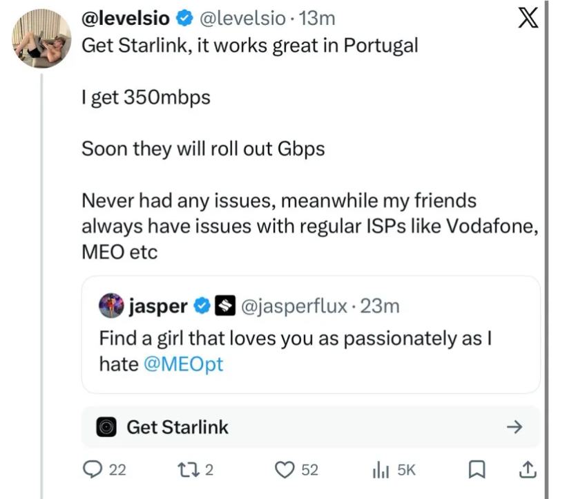 وقد ظهر هذا الاختبار لمستخدمي منصة “إكس” في أوروبا، عبر توصية بـ "احصل على ستارلينك" أسفل منشور يثني على خدمة الأقمار الصناعية Starlink، وكان الرابط يؤدي مباشرة إلى موقع ستارلينك الإلكتروني.