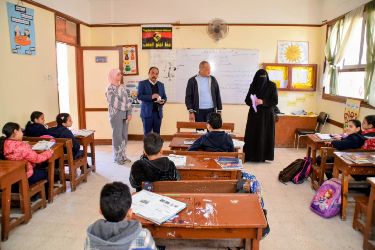 وتضم المدرسة 275 طالبًا وطالبة موزعين على 9 فصول دراسية، بالإضافة إلى 3 قاعات لرياض الأطفال، حيث حرص بدوي على تفقد عدد من الفصول الدراسية، واطلع على مستوى أداء الطلاب في مهارات القراءة والكتابة، كما أجرى حوارًا مباشرًا مع عدد من التلاميذ لقياس مدى إتقانهم للمهارات الأساسية في القراءة والكتابة وفق المعايير المعلنة من وزارة التربية والتعليم.