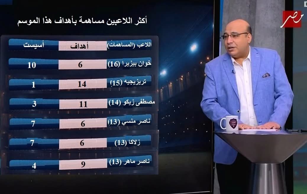 كشف الناقد الرياضي خالد طلعت عن أرقام جديدة لـ اللاعب خوان بيزيرا لاعب الزمالك.
