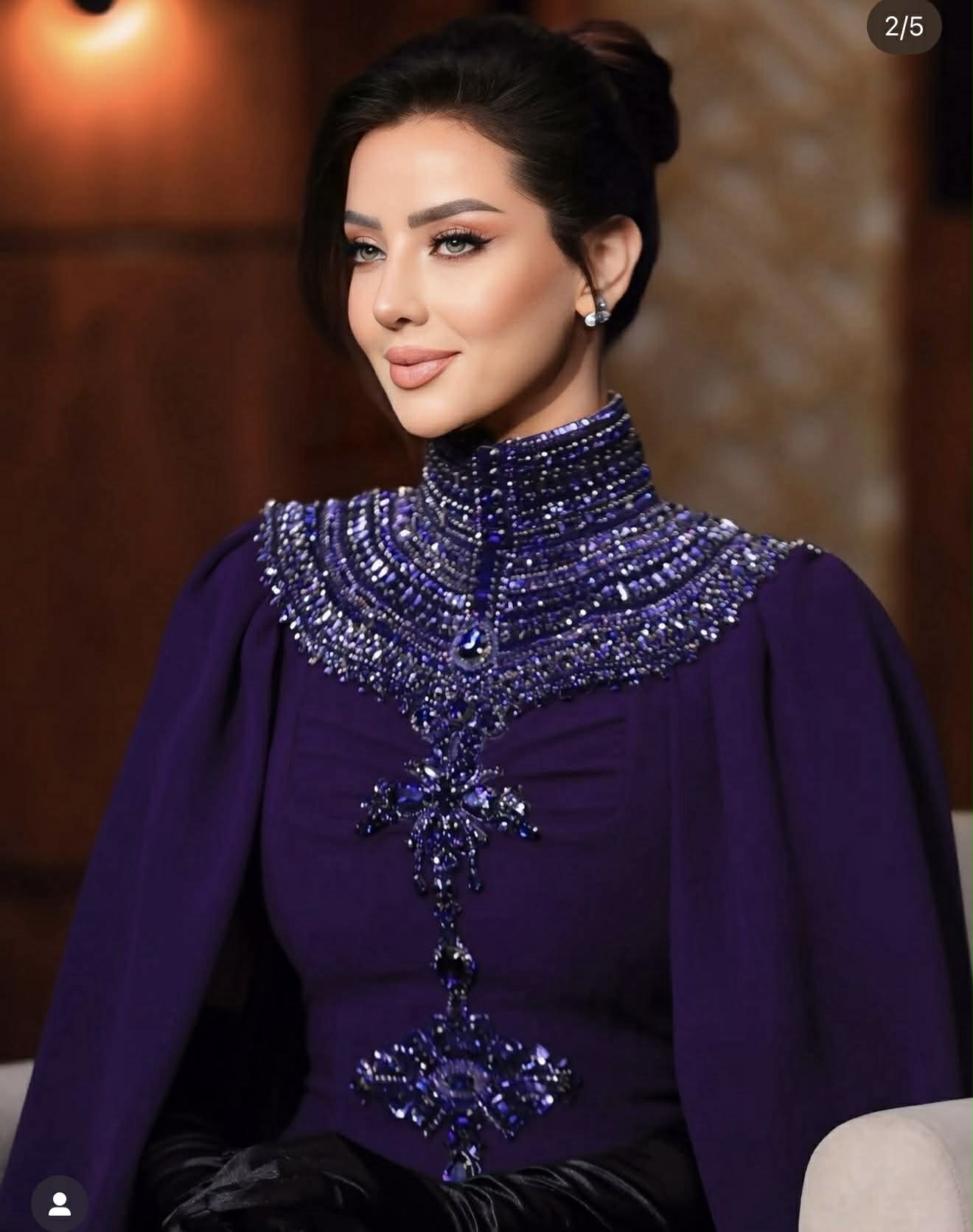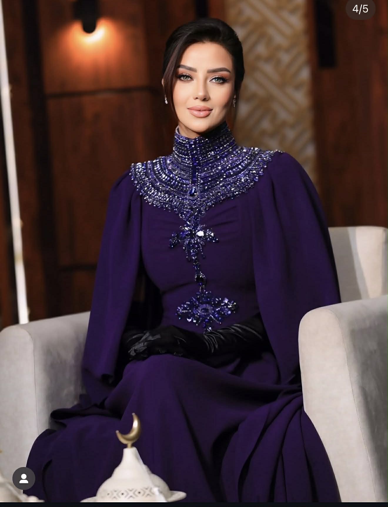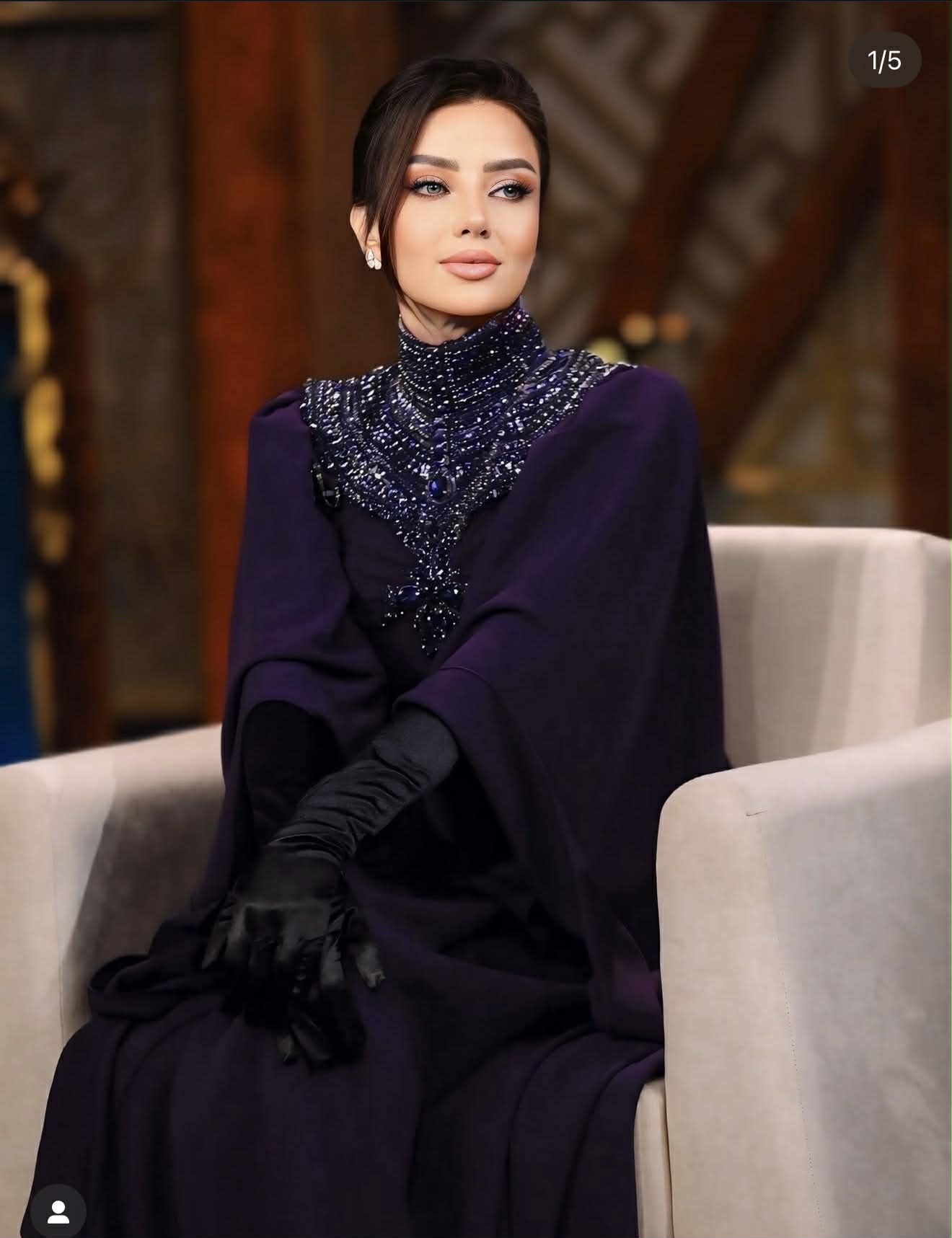 وتألقت رضوى، فى الصور بإطلالة لافتة مرتدية قفطان باللون البنفسجى المطرز من منطقة الرقبة .