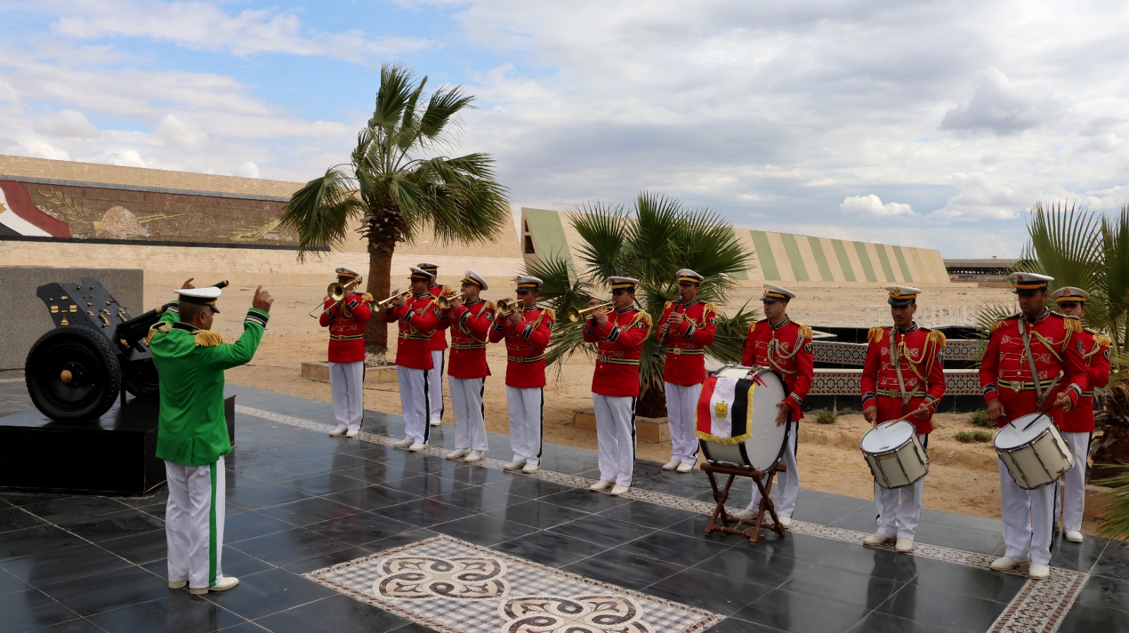 وخلال الاحتفال تم عزف الموسيقى العسكرية، "لسلام الشهيد" وهو تقليد عسكري وفاءً لشهداء مصر الأبرار، لما قدموه للوطن من بطولات وتضحيات، ثم قام الحضور بقراءة الفاتحة على روح الشهداء.