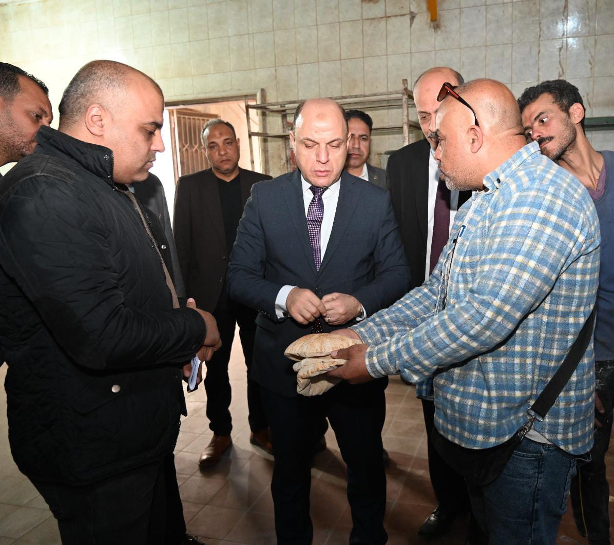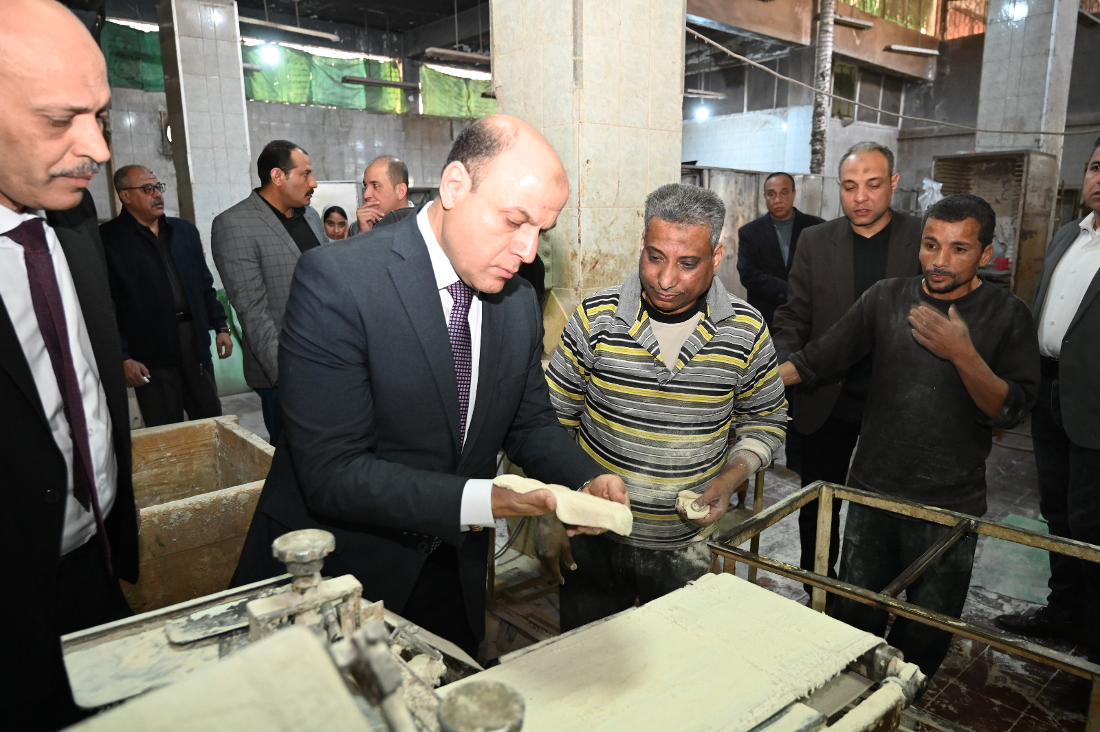 وخلال الجولة، تابع المحافظ سير العمل داخل المخبز ميدانيًا، حيث تفقد مراحل إنتاج الخبز بدءًا من تجهيز العجين وعمليات العجن والتخمير، واطمأن على جودة العجينة ومدى مطابقتها للمواصفات القياسية، ثم استكمل متابعة مراحل التقطيع والتشكيل حتى خروج الأرغفة من خطوط الإنتاج في صورتها النهائية، كما حرص على مراجعة وزن الرغيف والتأكد من الالتزام بالوزن المقرر، في إطار المتابعة المستمرة التي تقوم بها المحافظة لضمان تقديم رغيف خبز بالمواصفات المطلوبة ووصول حق المواطن كاملًا دون أي نقص أو تلاعب.
