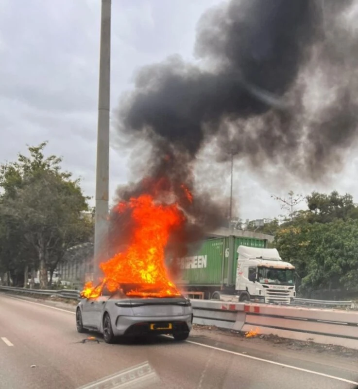 احترقت سيارة بي واي دي سيل الكهربائية التابعة لـ شركة بي واي دي الصينية على طريق توين مون رود في هونج كونج بسبب باور بانك كان على مقعد الراكب.