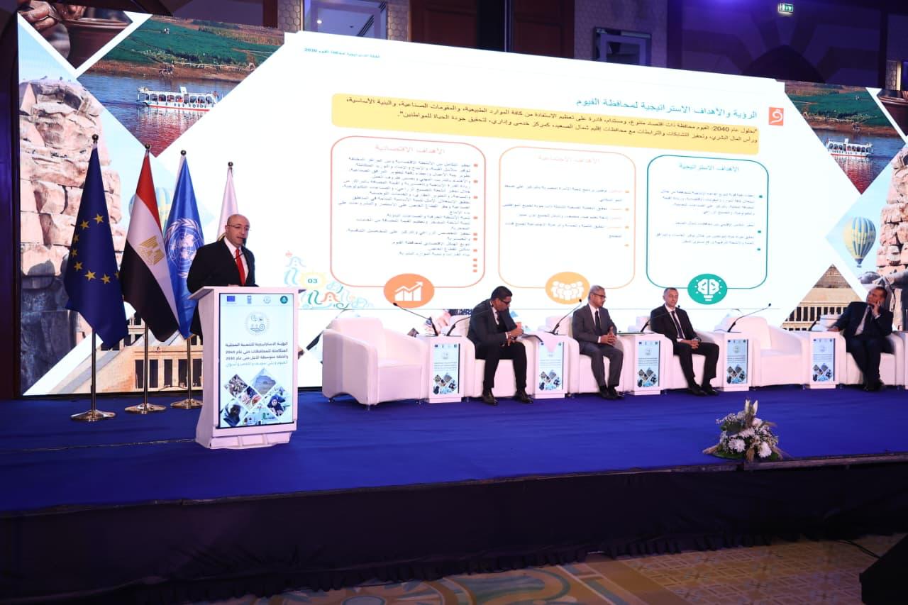 شهدت الجلسة الثانية من مؤتمر إطلاق الرؤية الإستراتيجية للتنمية المحلية المتكاملة للمحافظات حتى عام 2040 والخطة متوسطة الأجل حتى عام 2030 لمحافظات الفيوم وبني سويف والأقصر وأسوان والذي شهدته الدكتورة منال عوض وزيرة التنمية المحلية والبيئة وعدد من المحافظين ، استعراضاً من الدكتور محمد هانئ غنيم محافظ الفيوم، والمهندس عمرو لاشين محافظ أسوان واللواء عبدالله عبدالعزيز محافظ بني سويف والدكتور هشام أبوزيد نائب محافظ الأقصر لملامح الرؤية الاستراتيجية والخطة متوسطة الأجل.