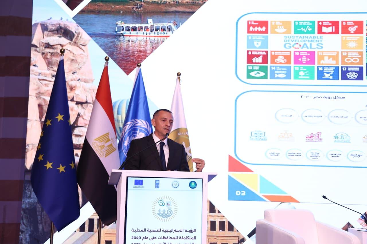 كما أوضح الدكتور محمد هانئ غنيم أن الرؤية التنموية للمحافظة تستهدف بحلول عام 2040 بناء اقتصاد محلي متنوع ومستدام، وتعظيم الاستفادة من الموارد المتاحة، وتحسين جودة حياة المواطنين من خلال تطوير الخدمات والبنية الأساسية، وتحفيز الاستثمار، وتنمية الصناعات التحويلية والتصنيع الزراعي، إلى جانب تنفيذ حزمة من البرامج والمشروعات في المحاور الاقتصادية والاجتماعية والبيئية بما يدعم تحقيق التنمية المستدامة بالمحافظة.