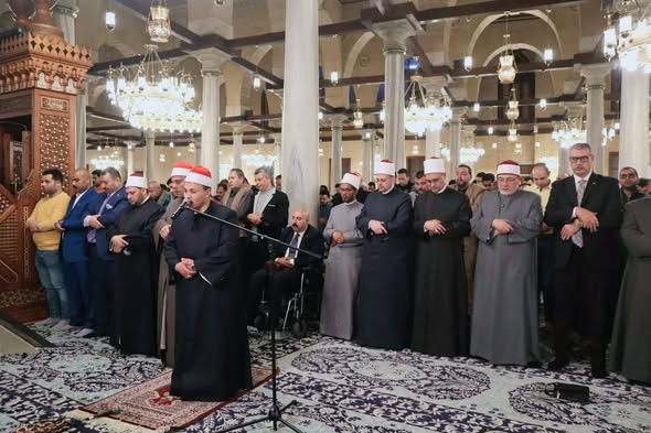 كما أمَّ فضيلةُ الشيخ محمد سعيد عبد العليم المصلين في مسجد عمرو بن العاص رضي الله عنه، وفضيلةُ الشيخ عمر ناصر في مسجد العزيز الحكيم، وفضيلةُ الشيخ عطية الله رمضان في مسجد مصر، في ليلةٍ قرآنية تجلّت فيها معاني التدبر والخشوع، وارتفعت فيها الأصوات بالدعاء والتسبيح.