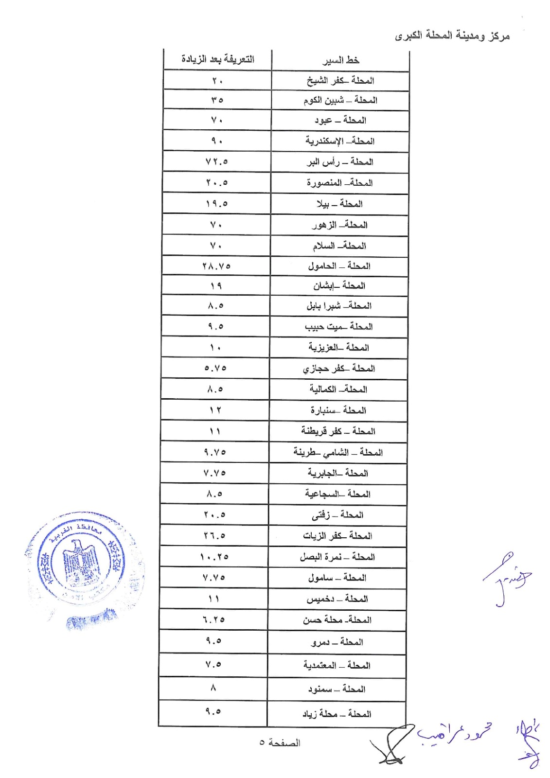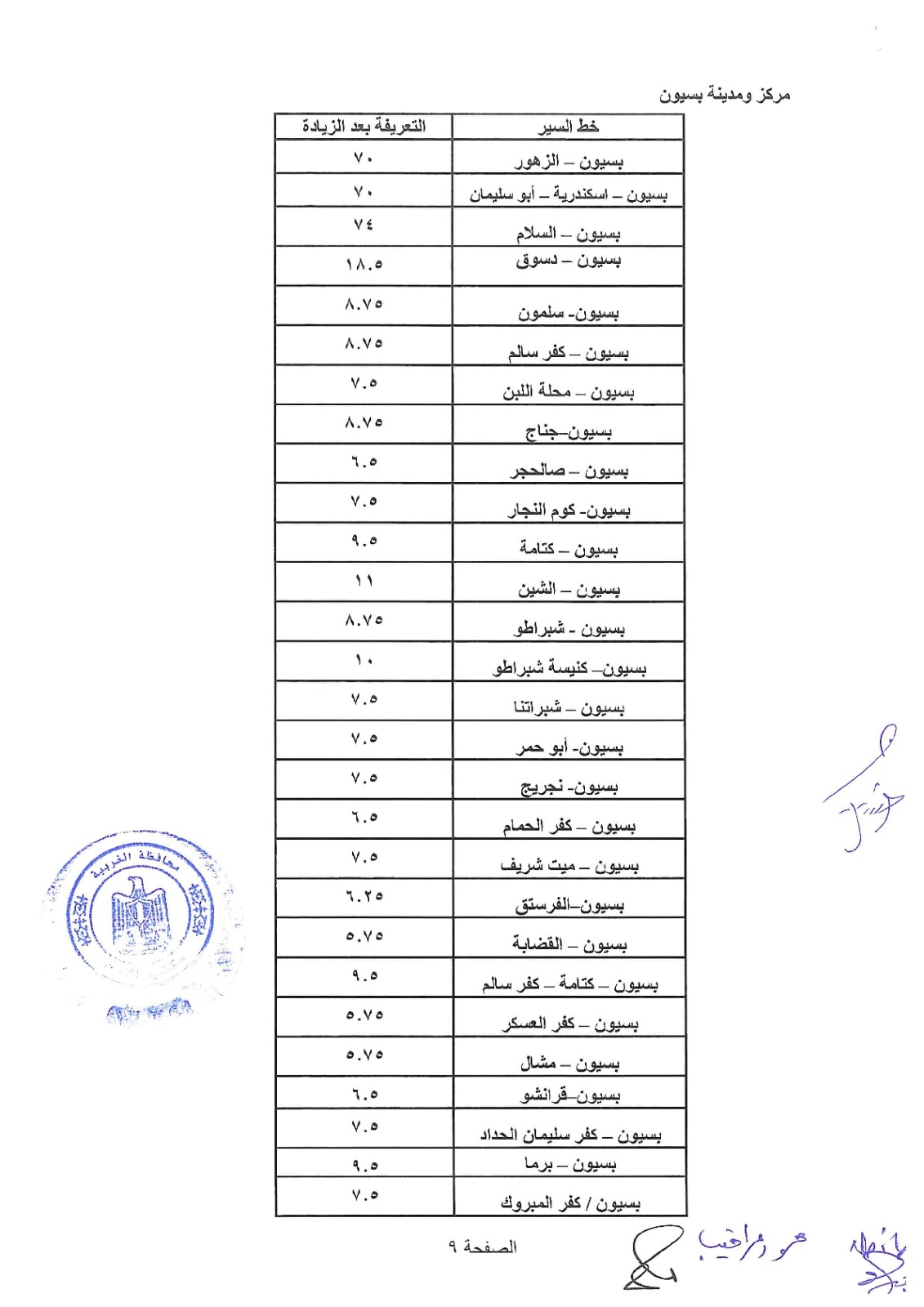 أصدر اللواء الدكتور علاء عبدالمعطي محافظ الغربية قرارًا بتعديل تعريفة الركوب لوسائل المواصلات على جميع الخطوط الداخلية بين مراكز ومدن المحافظة، وكذلك الخطوط الخارجية التي تربط الغربية بالمحافظات الأخرى، بالإضافة إلى خطوط النقل الداخلي، وذلك بما يتناسب مع الزيادة الجديدة في أسعار المنتجات البترولية، وفق الجداول المرفقة بالتعريفة المعتمدة.
