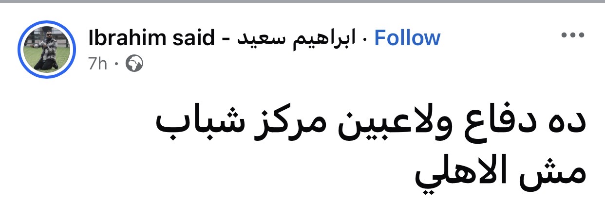 وكتب إبراهيم سعيد نجم الاهلي السابق عبر حسابه علي فيسبوك "ده دفاع ولاعبين مركز شباب مش الاهلي"
