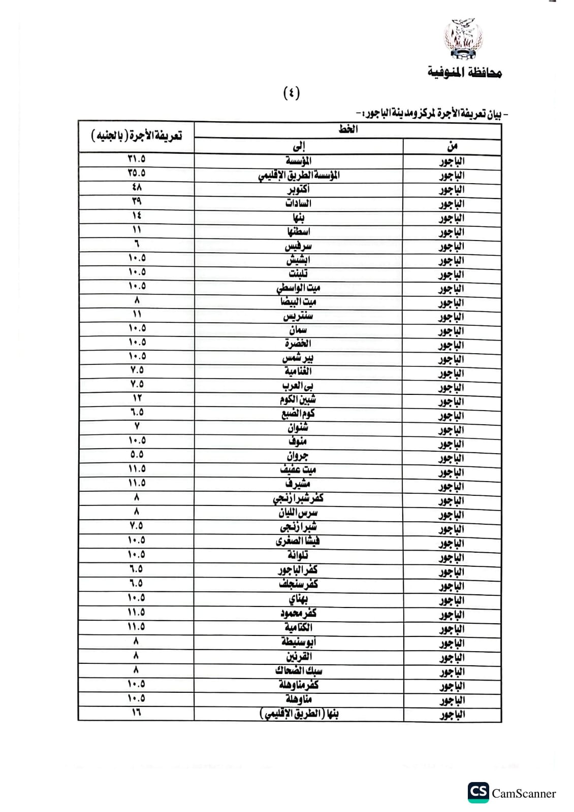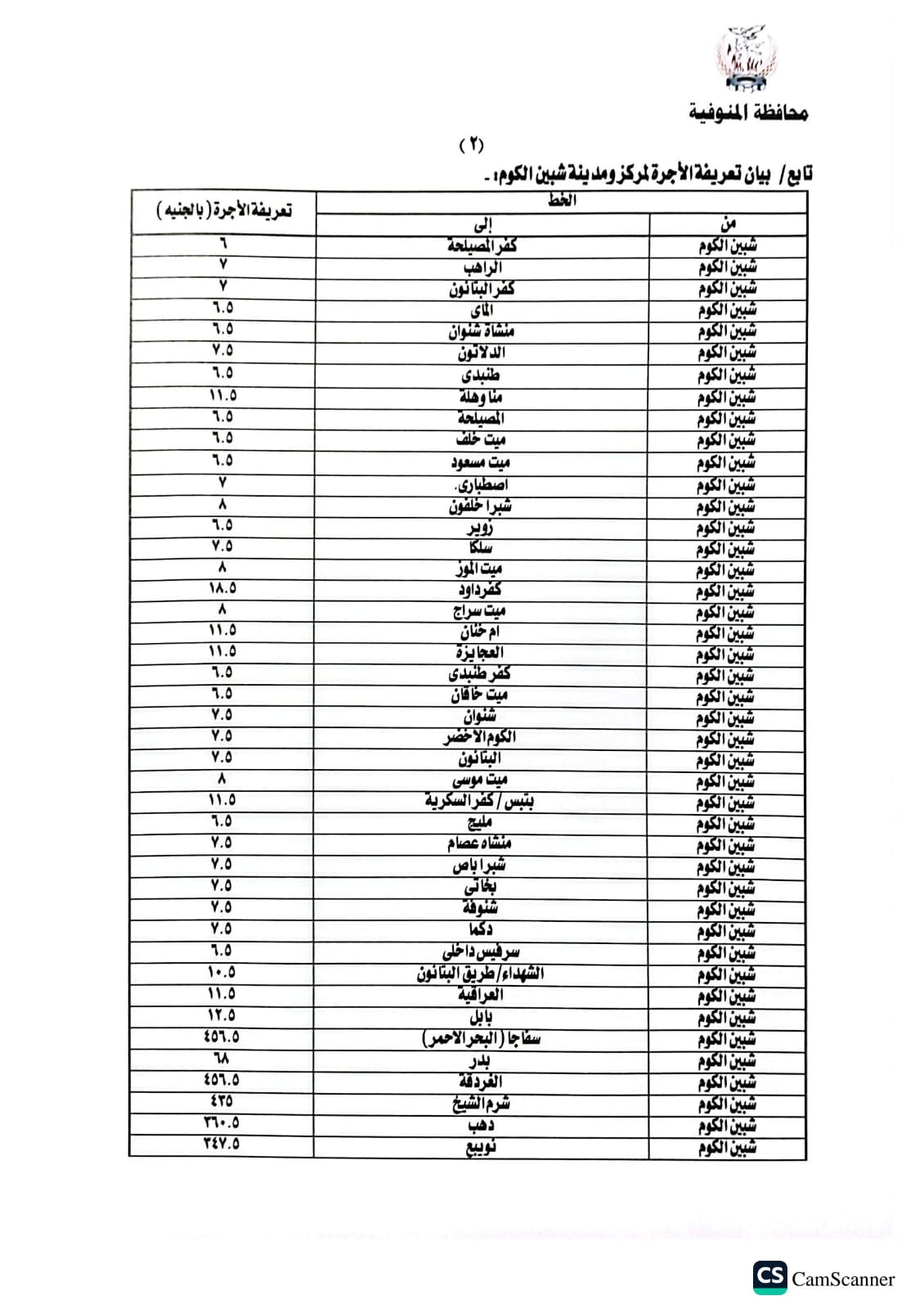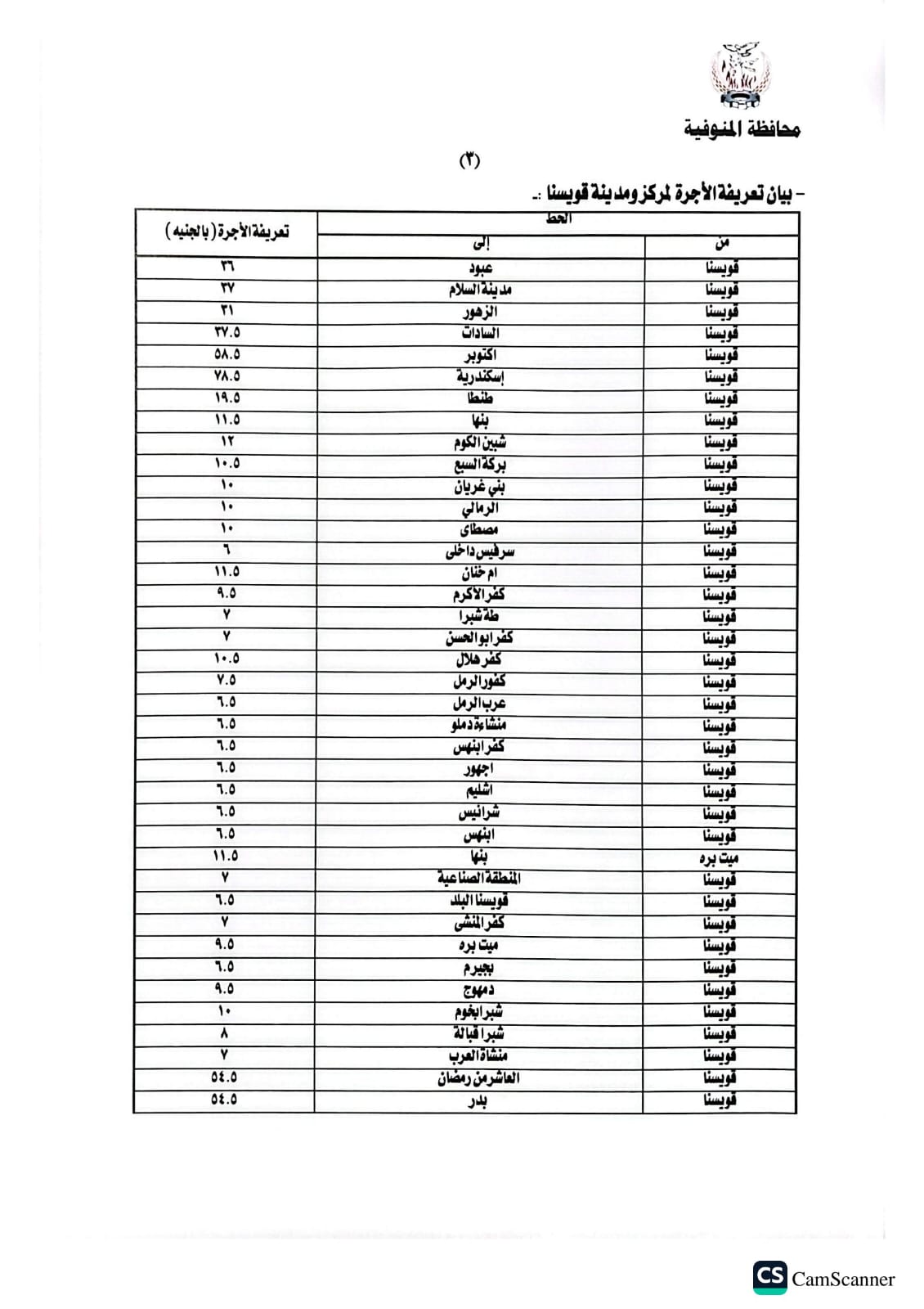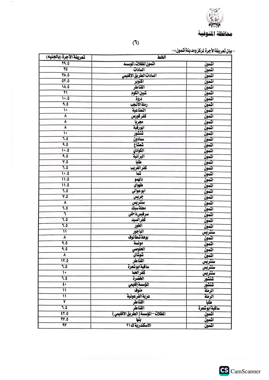أصدر اليوم اللواء عمرو الغريب محافظ المنوفية قرارا بشأن تعديل التعريفة الجديدة والمقررة لركوب سيارات الأجرة والسرفيس والتاكسي والتوك توك بدائرة المحافظة ، وذلك عقب قرار لجنة التسعير التلقائي للمنتجات البترولية وزيادة أسعار البنزين والسولار اعتبارا من اليوم الثلاثاء الموافق ١٠ مارس٢٠٢٦.