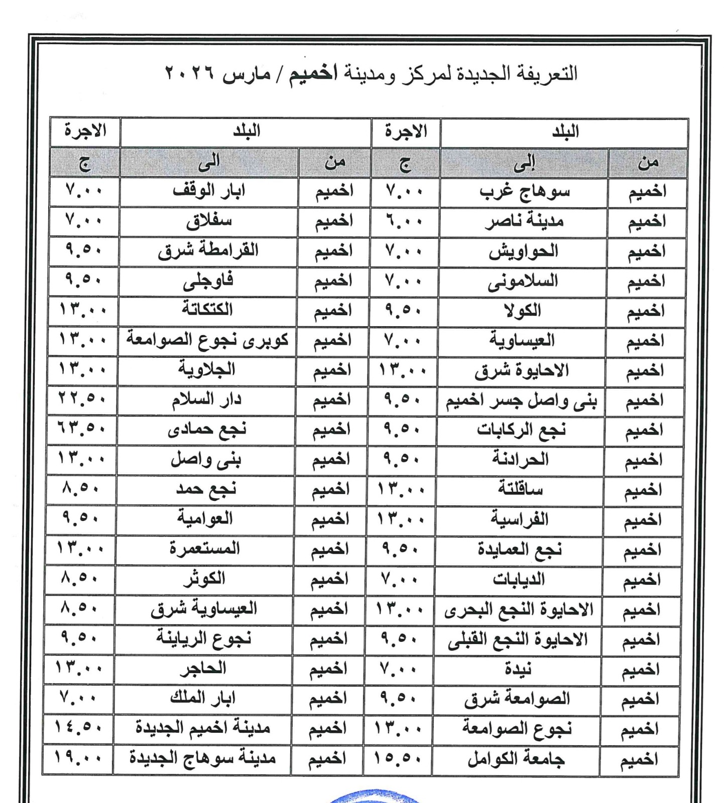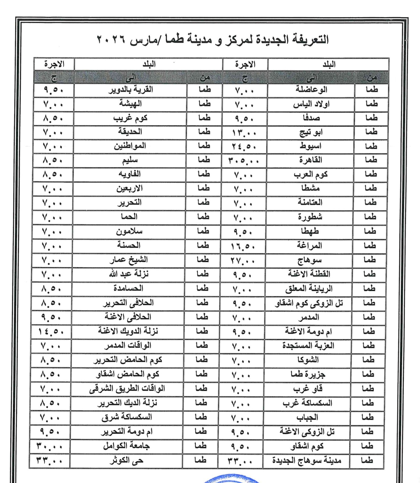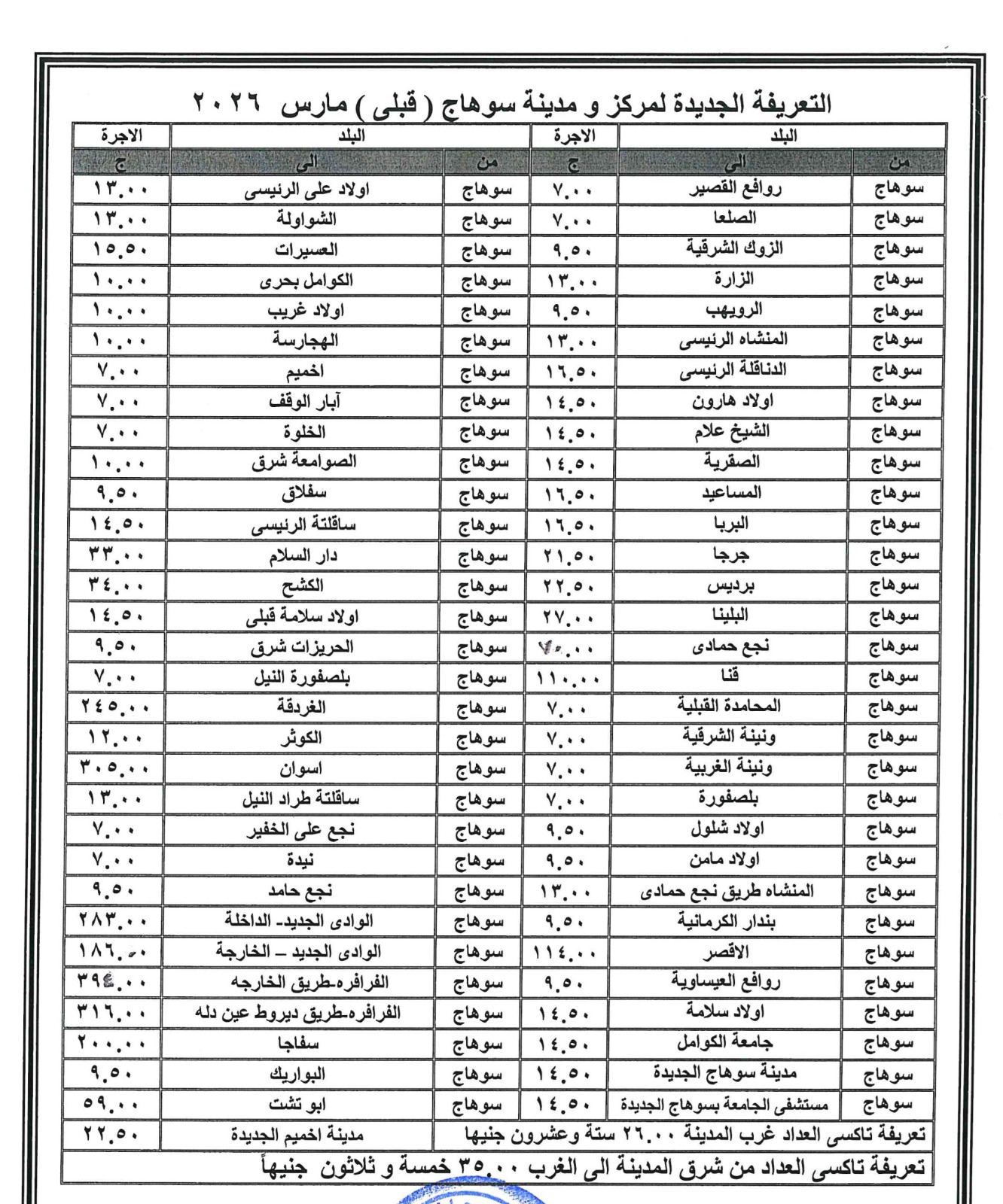 أصدر اللواء طارق راشد محافظ سوهاج، قرارا بشأن تعديل تعريفة الركوب لسيارات الأجرة العاملة بنطاق المحافظة، وذلك بعد قرار لجنة التسعير التلقائي لأسعار المنتجات البترولية بوزارة البترول وتحريك الأسعار لبعض المنتجات اعتبارًا من اليوم، في ظل الظروف الاستثنائية التي تمر بها اسواق الطاقة عالمياً.