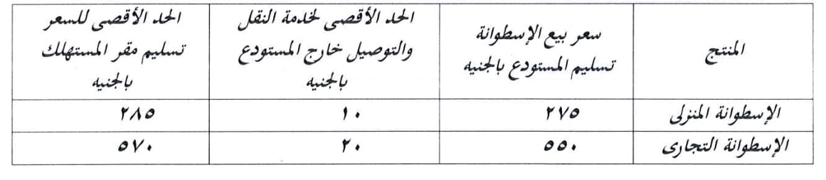 على أن يتم تسليمها للمواطنين وفقًا للأسعار التالية: