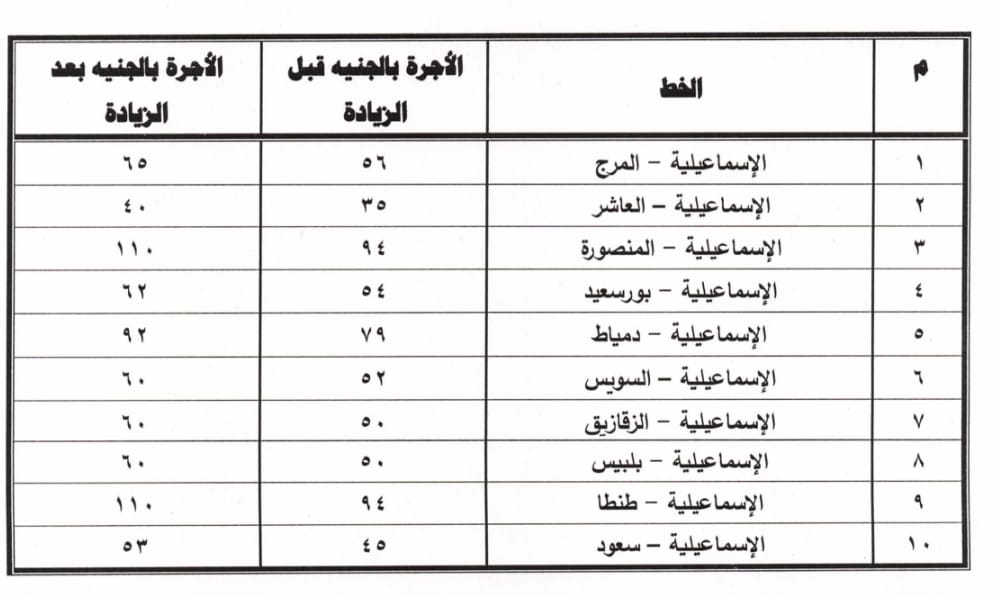 وللإبلاغ عن شكاوى مخالفة تعريفة الركوب أو سوء المعاملة بالإسماعيلية، خصصت المحافظة ارقام للتواصل بين الأجهزة المعنية والمواطنين في حالة التعرض لأي واقعة ابتزاز من قبل السائقين برفع الأسعار وعدم الالتزام بالتعريفة الجديدة .