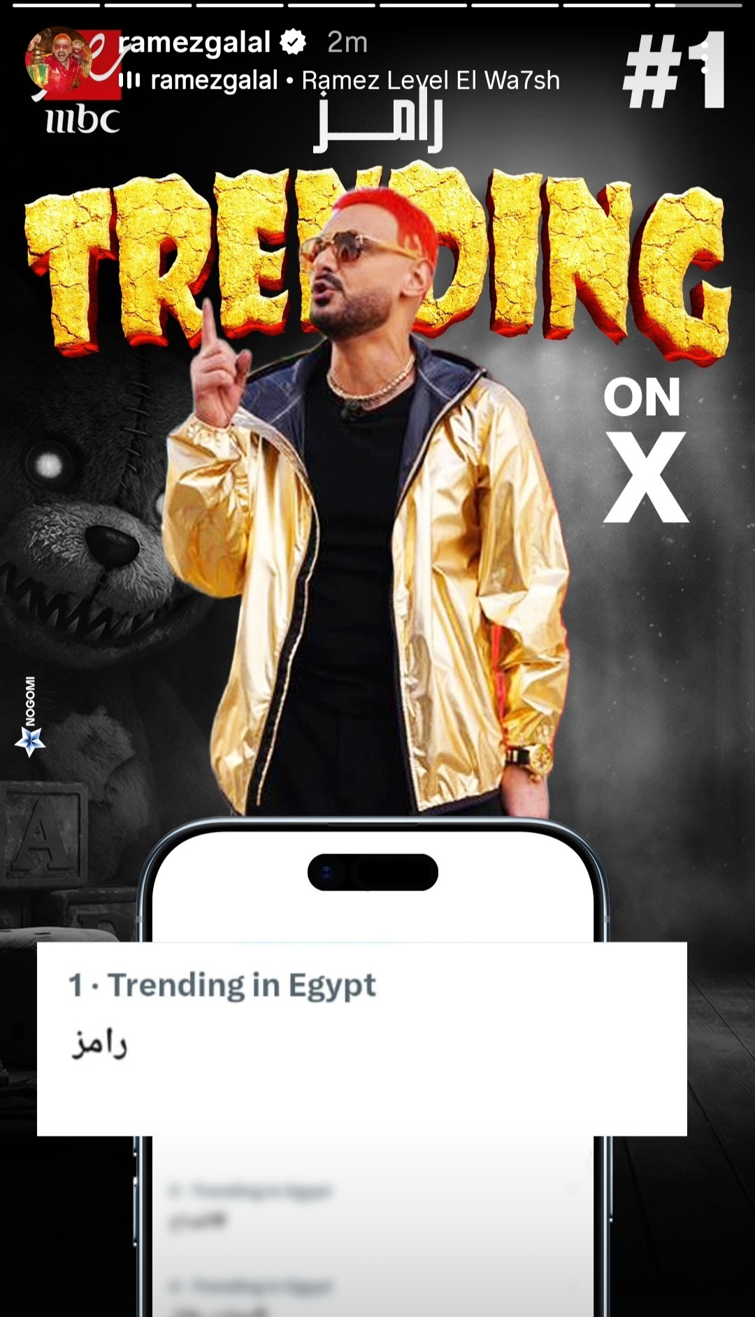 وكشف الفنان رامز جلال عن تصدر اسم رامز للتريند بعد عرض حلقة الراقصة دينا في رامز ليفل الوحش.