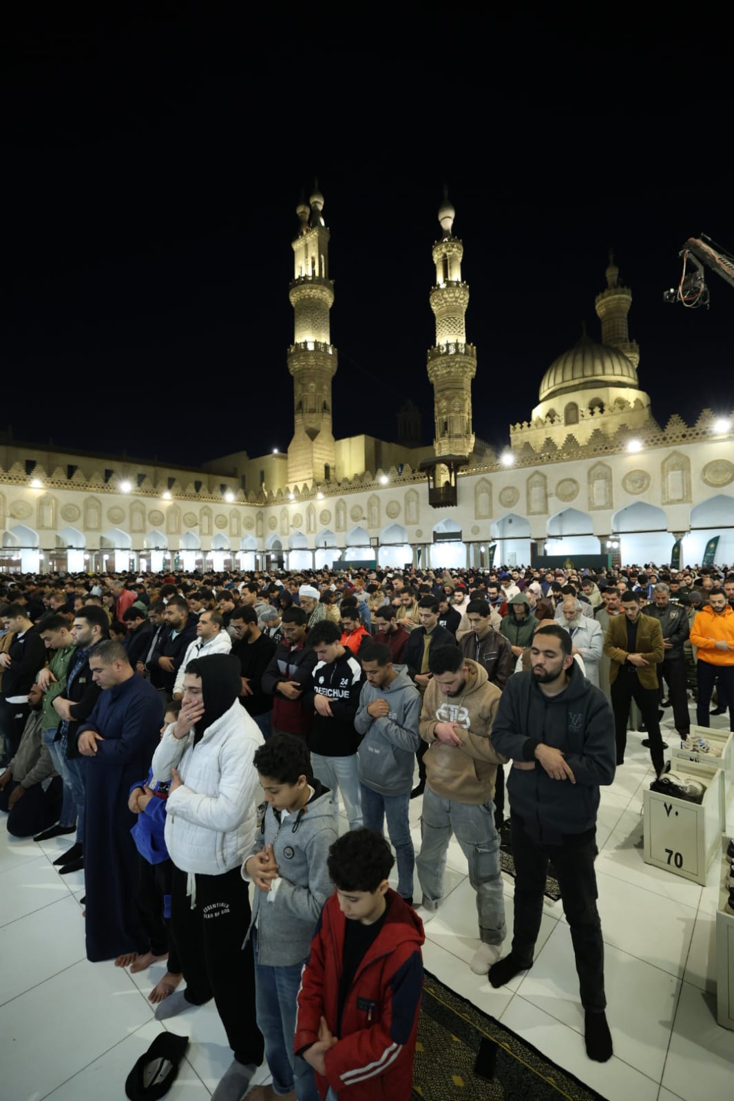 الآلاف يؤدون صلاتي العشاء والتراويح بالجامع الأزهر