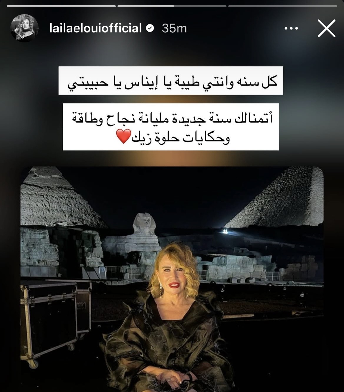 وكتبت ليلى علوي عبر الاستوري: “كل سنة وانتي طيبة يا حبيبتي اتمنالك سنة جديدة مليانة نجاح وطاقة وحكايات حلوة زيك”.