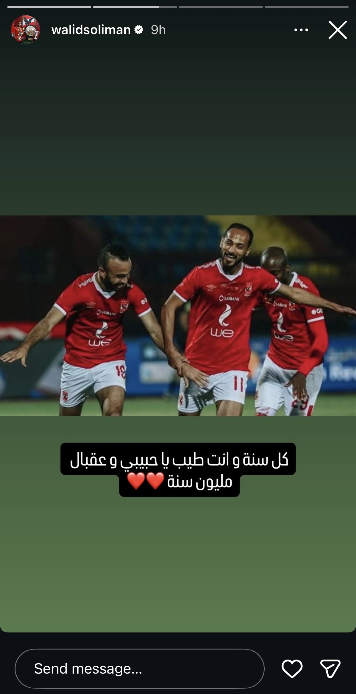 وكتب وليد سليمان عبر ستوري حسابه على موقع التواصل الاجتماعي انستجرام: “كل سنة وانت طيب يا حبيبي وعقبال مليون سنة”.