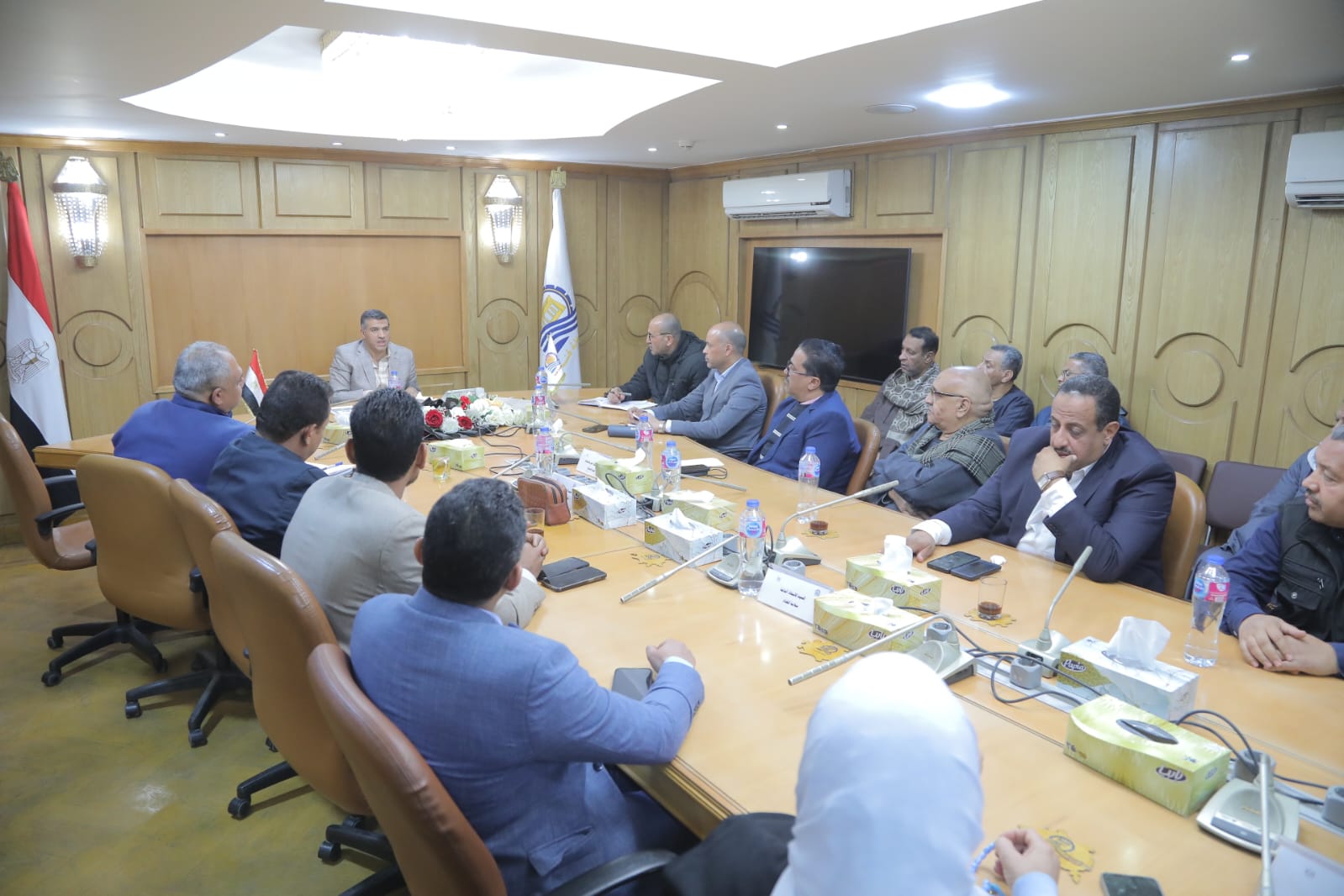 اجتمع اللواء دكتور مصطفى الببلاوي، محافظ قنا، بقيادات الغرفة التجارية، ومسؤولي هيئة سلامة الغذاء، وعدد من كبار التجار وممثلي السلاسل التجارية الكبرى، لمتابعة تنفيذ توجيهات الدولة، بشأن ضبط الأسواق وتخفيف الأعباء المعيشية عن المواطنين.
