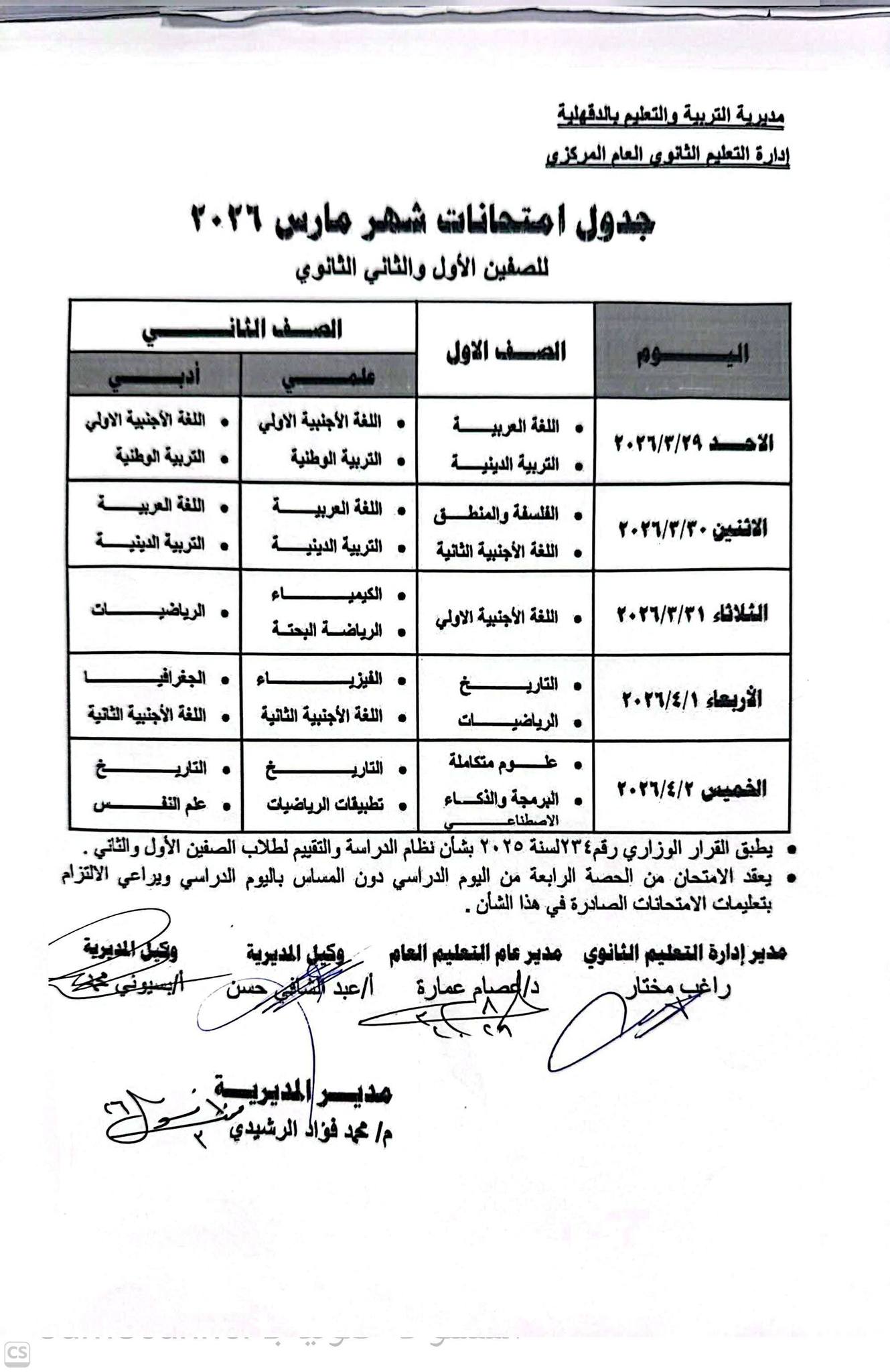 وتنفيذا لقرار وزارة التربية والتعليم ، أعلنت مديريات التربية والتعليم ، جدول امتحانات شهر مارس 2026 في مختلف المحافظات .