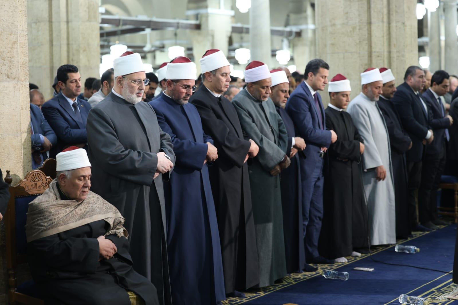 وتقدَّم صفوف المصلين الدكتور محمد الضويني وكيل الأزهر الشريف، والدكتور أحمد الشرقاوي، وكيل قطاع المعاهد الأزهرية، والدكتور عبد المنعم فؤاد المشرف العام على الأروقة العلمية بالجامع الأزهر، والدكتور هاني عودة مدير الجامع الأزهر، إلى جانب لفيف من علماء الأزهر الشريف وقياداته، حيث شاركوا جموع المصلين الدعاء والتضرع إلى الله تعالى أن يتقبل صالح الأعمال، وأن يعمَّ الخير والبركة على مصر والأمة الإسلامية.